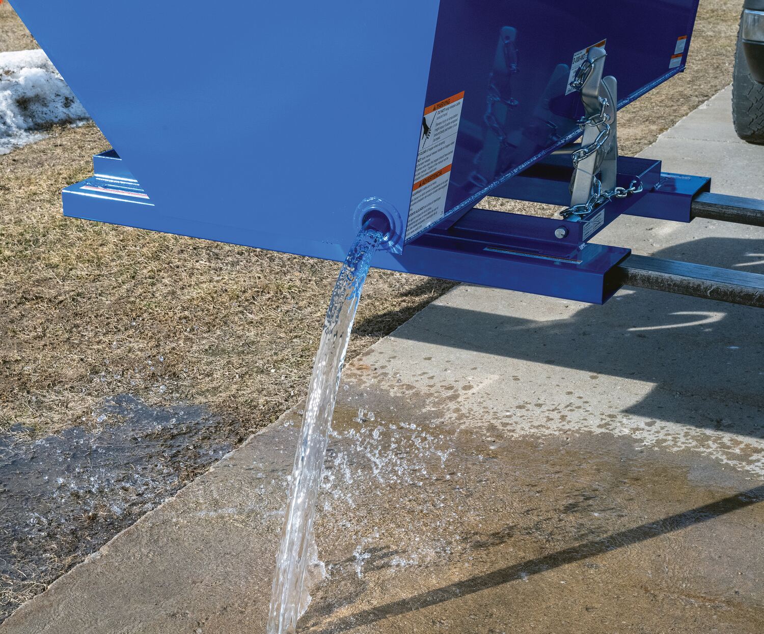 Factory Installed Welded Steel 2 In. Threaded Drain Plug Left Corner For D Style HoppersThreaded drain plug, located in left corner for D-style hopper, leak proof chute welds included.