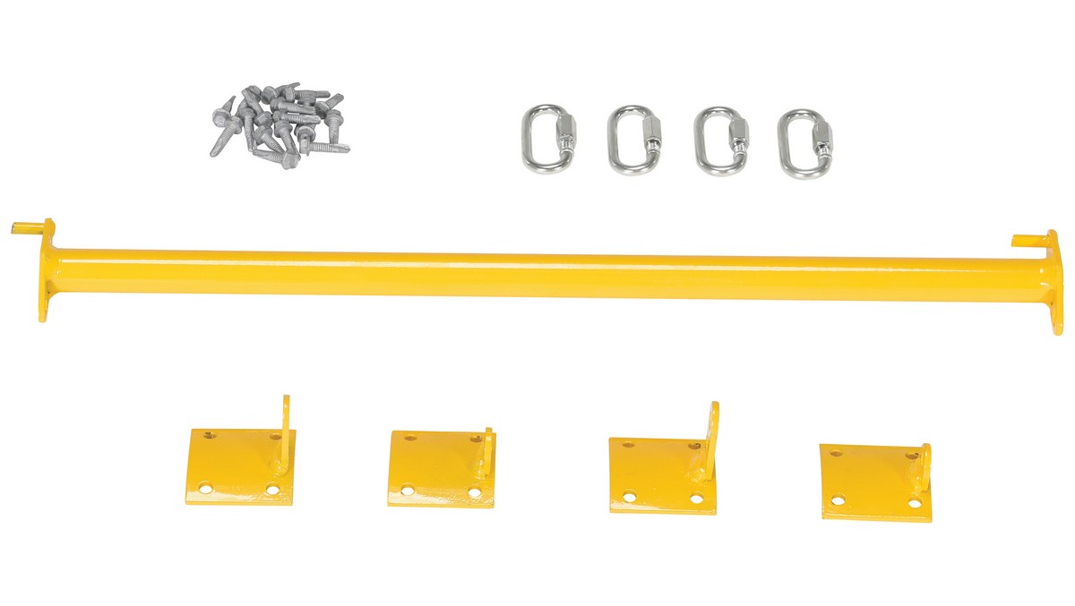 The bollard conversion kit is a great addition to the bollard barrier system. The kit is ideally used to convert existing bollards into barrier systems. The kit includes four (4) bollard mounting brackets, (12) twelve self tapping screws, (1) post welded bracket, and (4) four quick links. This kit is not compatible with 2 inch diameter bollards or 24 inch tall bollards.
