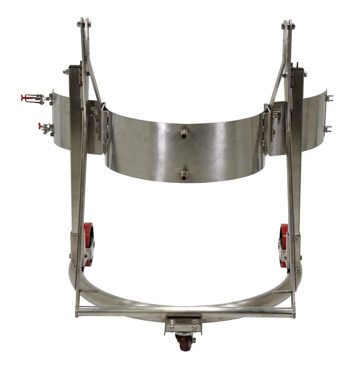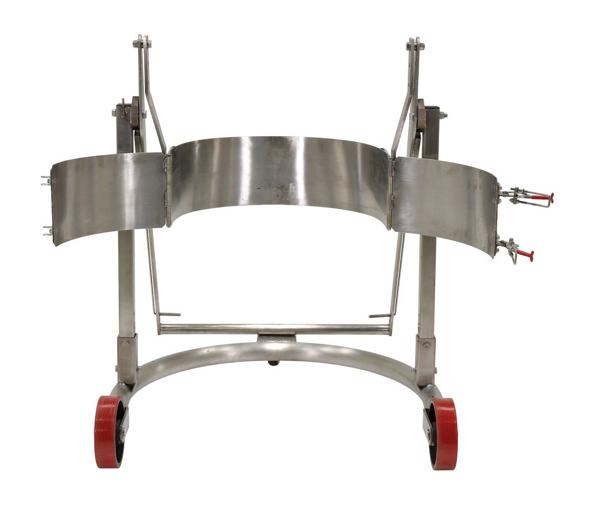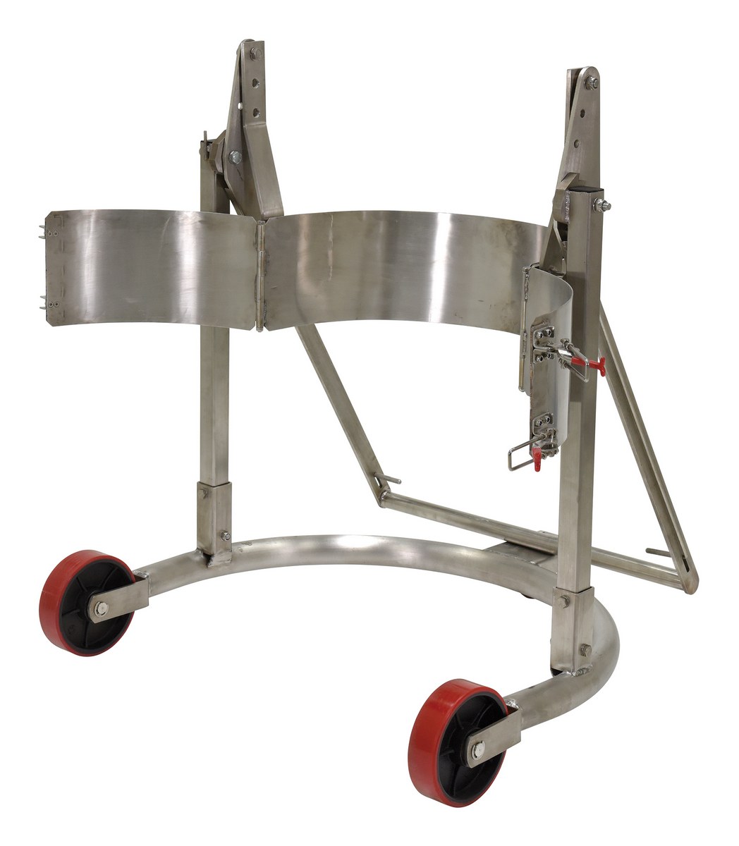 Stainless Steel Manual Drum Carrier/Rotator For Steel Drums 55 Gallon 800 Lb. Capacity SilverStainless steel drum carrier/rotator is ideal for raising, transporting, rotating, tilting and draining 55 gallon steel drums. Sturdy handle provides leverage for heavy lifting and easily locks drum in position 5 to 11" off floor. Dual fingertip operated locks secure the raised drum. 304 All stainless steel construction.