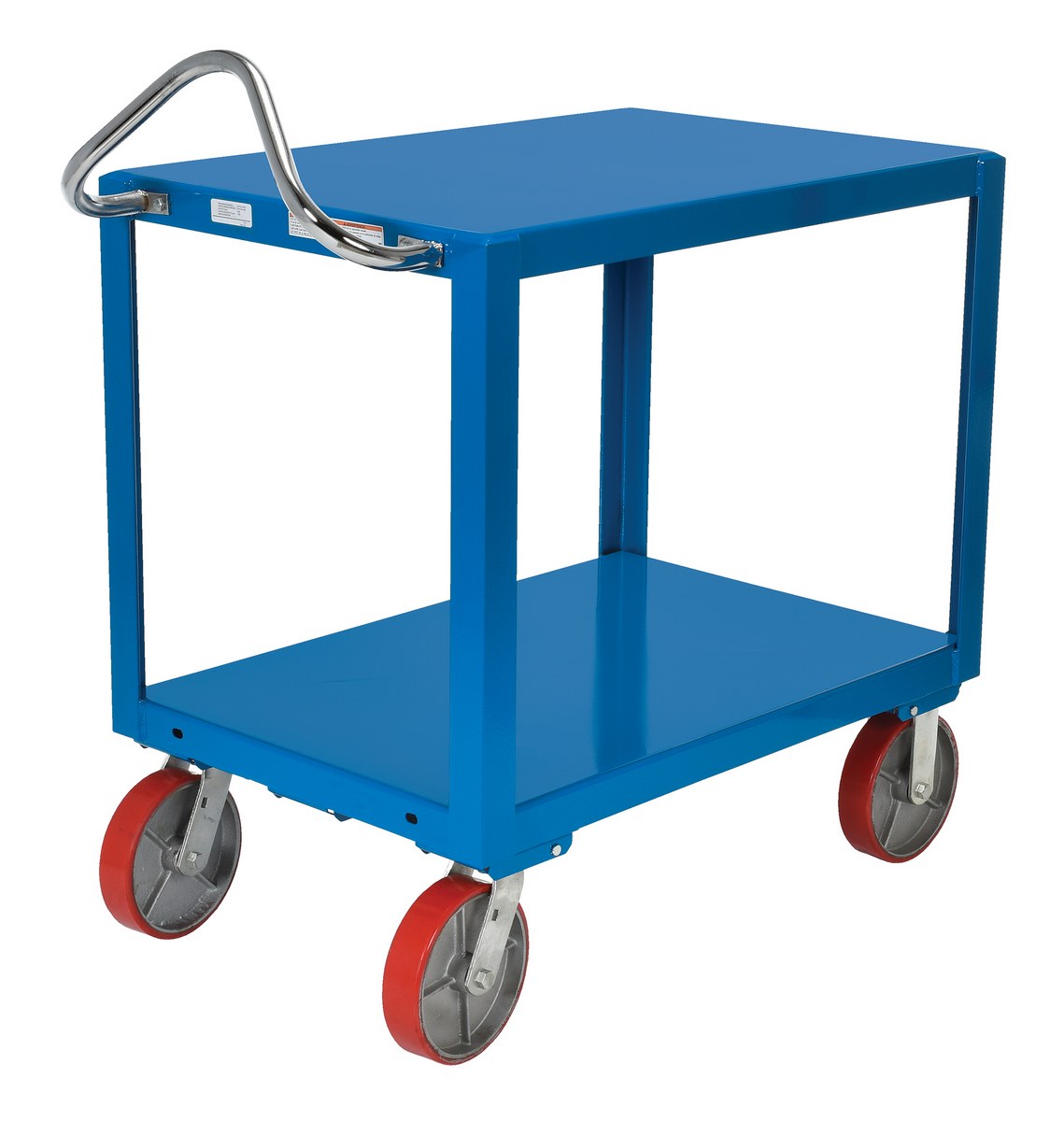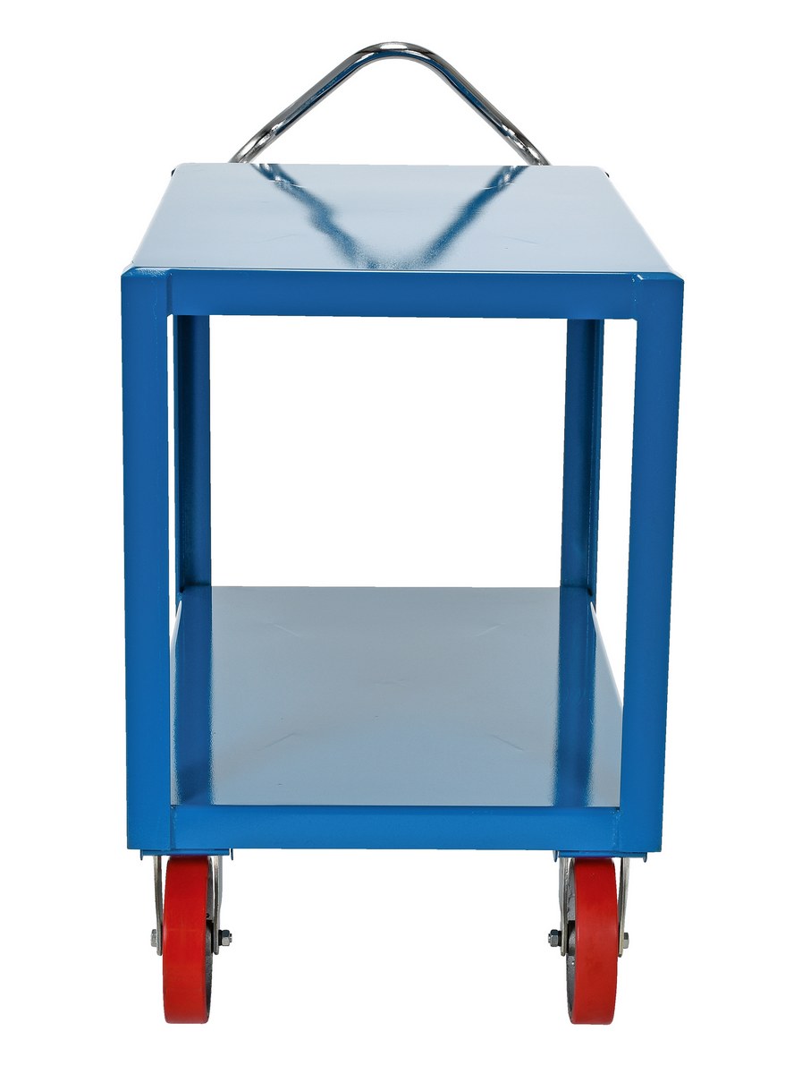 Steel 24 In. x 36 In. Platform Ergo Handle Cart with Poly Casters 3600 Lb. Capacity BlueThe ergo-handle cart is constructed of heavy-duty steel to handle heavy loads. The patented ergonomic handle decreases fatigue by allowing the operator to easily maneuver the cart. Invertible bolt-on chrome ergonomic handle designed for individual height comfort and handling of long loads.