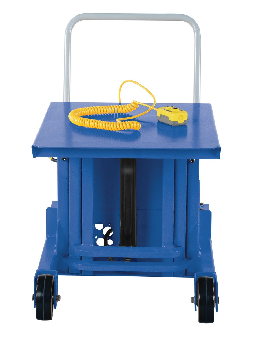 Designed to reduce back injuries and cumulative trauma disorders. Lifts heavy equipment to ergonomic working height. All welded steel construction will provide years of service and hard work. Small frame size allows unit to access hard-to-reach locations. Two (2) rigid and two (2) swivel with side brake casters standard.