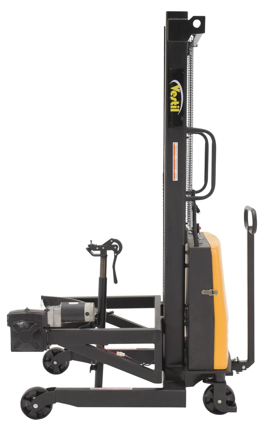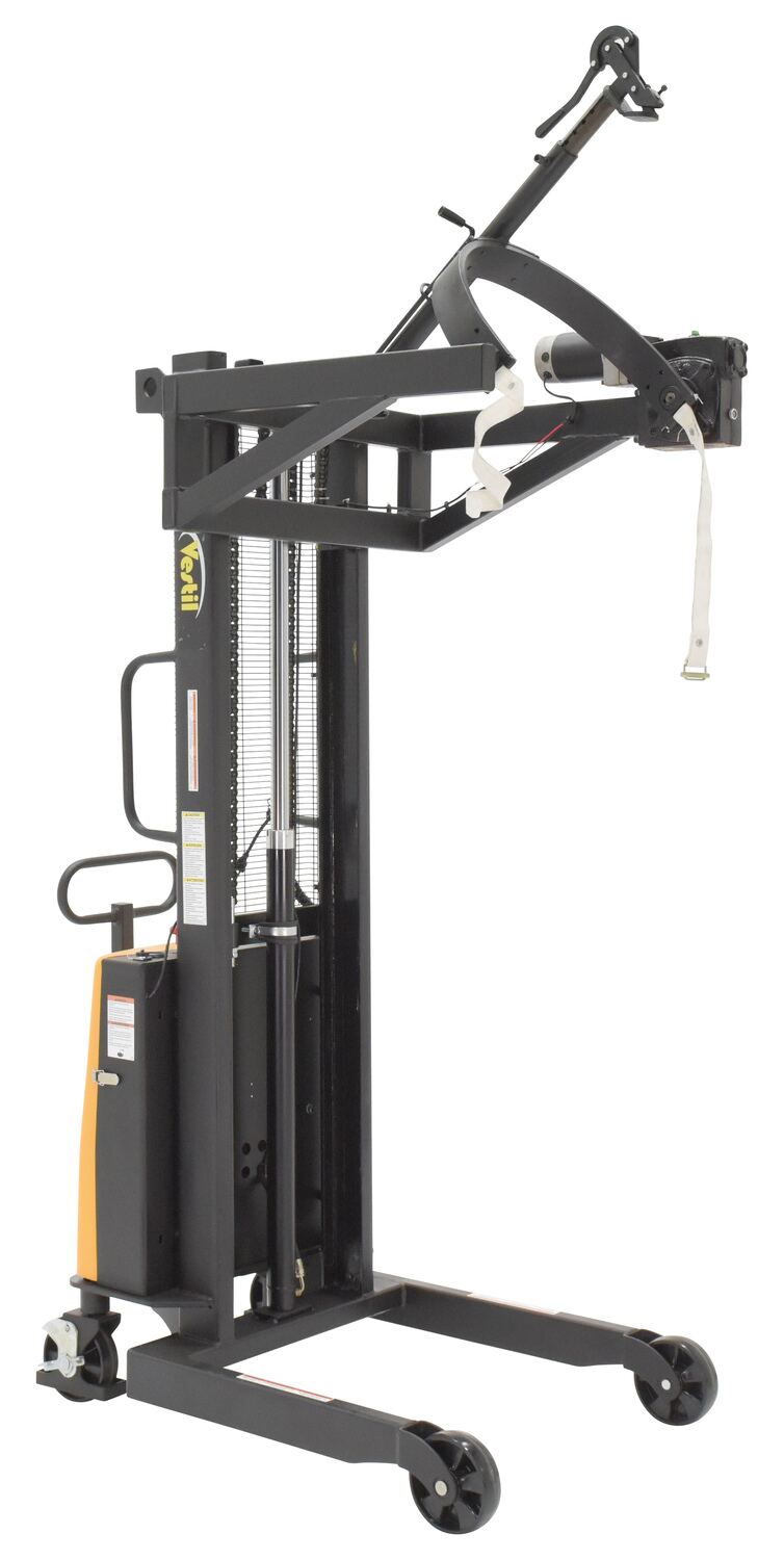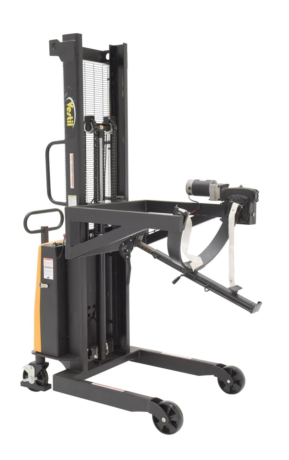 Steel DC Powered Drum Lifter/Rotator/Transport 61 In. x 36-1/4 In. x 88 In. 550 Lb. Capacity Black/YellowThis portable Drum Lifter/rotator/transporter features a DC powered rotation mechanism which provides rotation of the drum. The DC powered mechanism raises and lowers the drum (on-board charger standard). For use with steel and fiber drums.