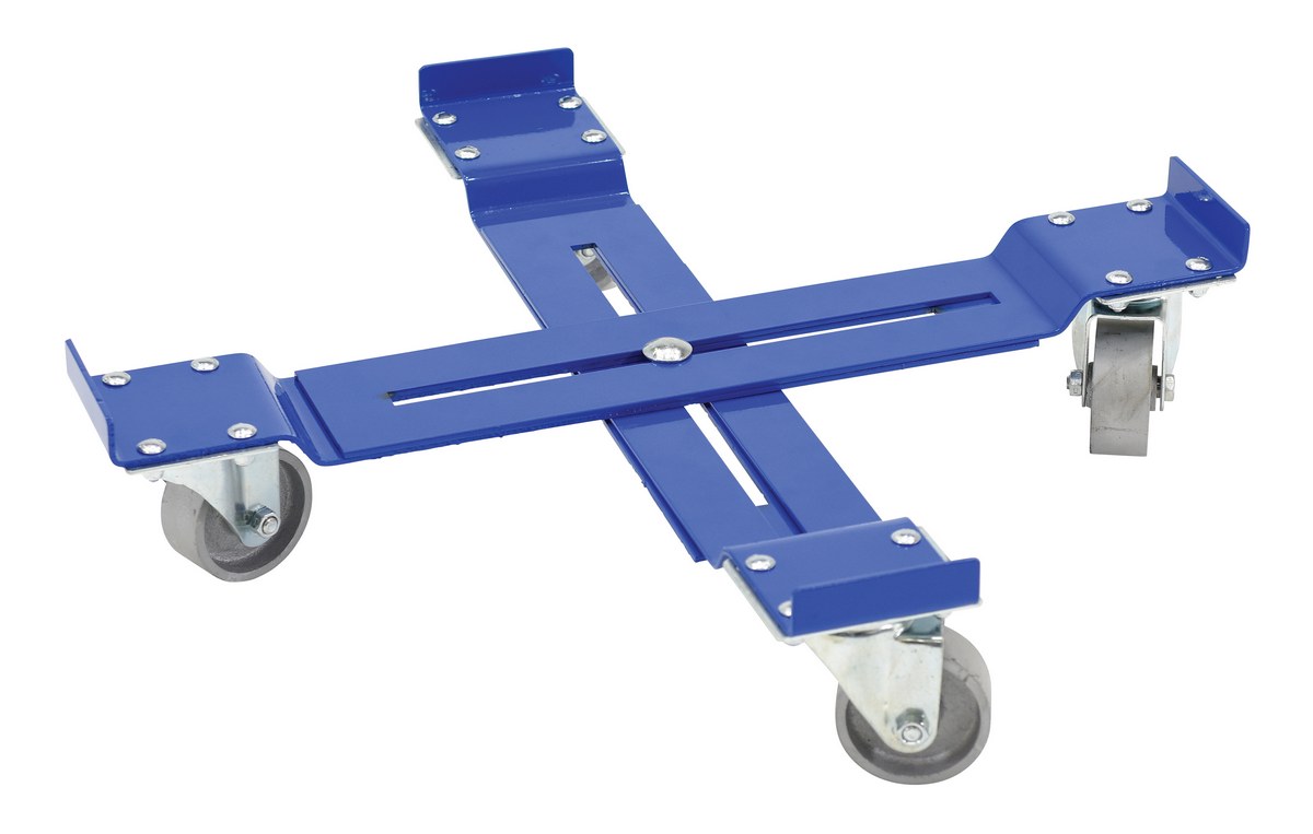 Steel Mobile Drum Dolly-Adjustable with Cast Steel Wheels 25-7/8 In. x 25-7/8 In. x 5-1/16 In. 1200 Lb. Capacity BlueThe multi-level drum dolly is ideal for transferring a variety of drum and crate sizes. The steel construction can withstand heavy loads on a daily basis. The smooth finish allows for simple handling from workstation to workstation.