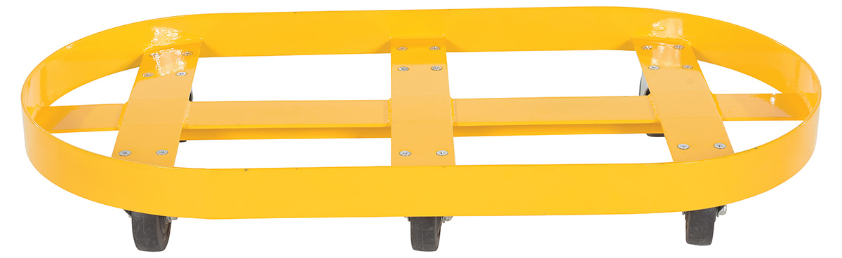 Steel Double Drum Dolly with Glass Filled Nylon Casters 45 In. x 45 In. x 39 In. Two 30 Gallon 2000 Lb. Capacity YellowA double drum cart is a revised look on an old classic. The double drum cart allows the user to transport two drums in a single load. This not only helps to save time, but it also minimizes the manual labor of handling individual drums. Six glass filled nylon casters add maneuverability and durability when traversing a variety of surfaces. Baked in powder coat finish for added long lasting toughness.