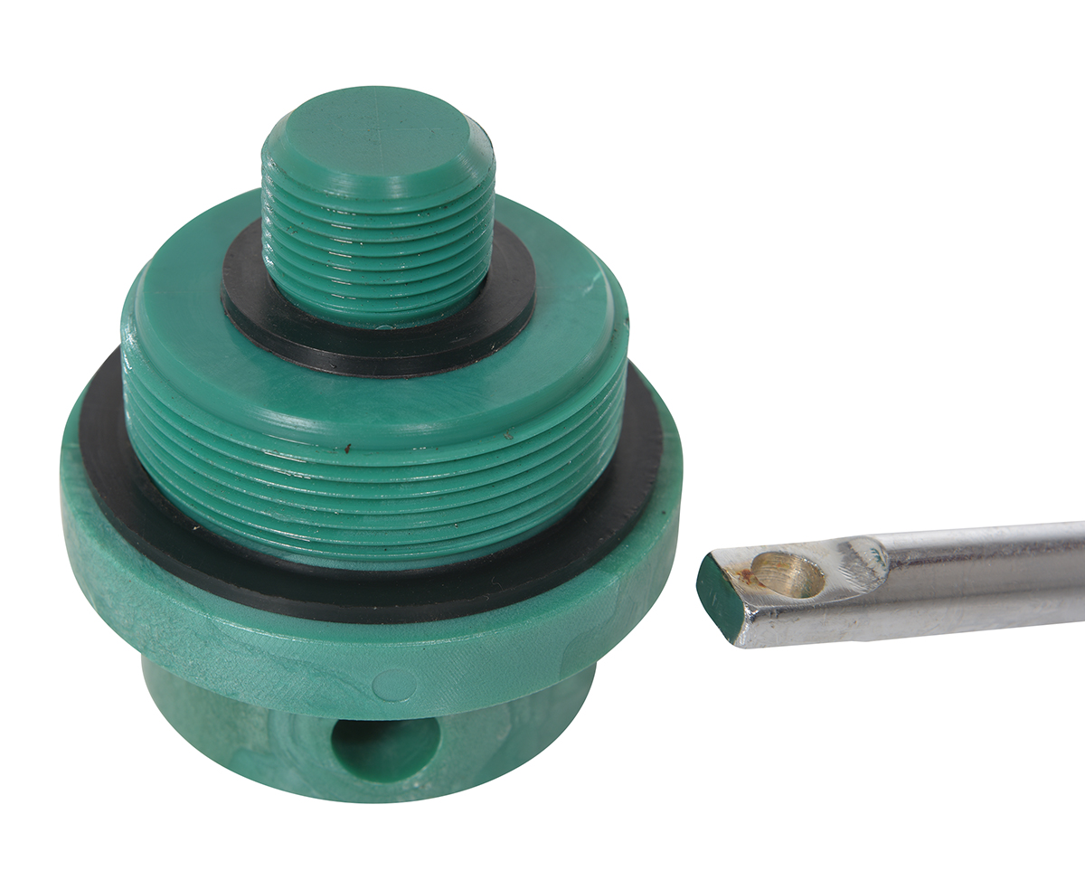 Polycarbonate Drum Lock 2 In. and 3/4 In. Thread Diameter GreenPrevent unauthorized access to drum contents. Simply screw drum lock into place, insert zinc plated steel rod, and secure with padlock (padlock not included). Steel rod is pre-drilled with a padlock hole.