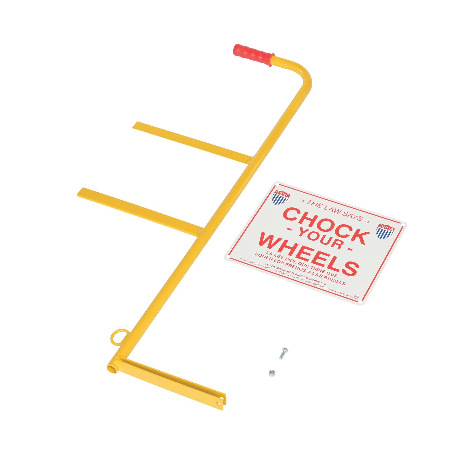 Handle Kit 38 In. x 20-3/4 In x 7/8 In. to Convert an EALUM-7 to an EALUM-7-HS YellowLooking for a way to upgrade your EALUM-7 wheel chock? How about adding an ergonomic handle! This handle secures tightly to an existing EALUM-7 chock, quickly making it into a single unit. The unique design allows for easier movement of the chock in and out of positon under trailer wheels, reducing the risk of back knee, and foot injuries. EALUM-7 wheel chock is available separately.