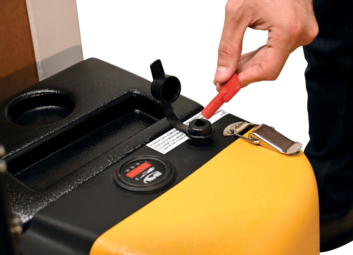 Steel Electric Pallet Truck with Scale 25 In. x 47 In. 3000 Lb. Capacity Black / YellowThe electric pallet truck with scale can verify inbound and outbound freight right on your pallet truck and then move your loads with ease. The LCD scale and function keys (zero, tare, net/gross, print, LB/KG), displays weight in one (1) pound increments within trucks rated capacity. The scale display operates on AA batteries (best accuracy is 0.01 percent of maximum calibrated weight). The scale is not NTEP approved (not legal for trade). Scale head includes RS232 port for serial printing. An individual can raise and lower loads with a push of a button. The unit makes it easy to maneuver loads in warehouses and trailers. Reinforced welded forks with adjustable tie-rods provide long service. The high torque DC drive and lift motor handles heavy duty jobs, while the ergonomic handle features an easy to operate throttle with infinite adjustment of forward and reverse speeds, lift/lower controls, proprietary safety-enhancing emergency reverse function, and horn. Includes an electromagnetic disc brake with automatic dead-man feature that activates when the user releases the handle.