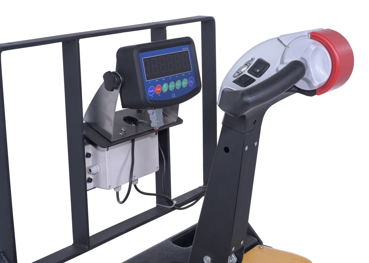 Steel Electric Pallet Truck Single Fork 40 In. Length With Scale 2,600 Lb. Capacity BlackThere are jobs where a standard electric pallet truck will suffice, but sometimes the job requires something unique. With the single fork electric pallet truck that requirement is fulfilled. The one fork design enables users to pick up and transfer items with a single fork pocket that would previously be difficult to maneuver such as half size pallets or bulk containers. With a walk behind set-up, the controls are organized in an accessible central location on or near the driving handle. This unit is battery operated for consistent steady use. (2) 12V AGM batteries standard. Powder-coated finish for baked in added toughness.