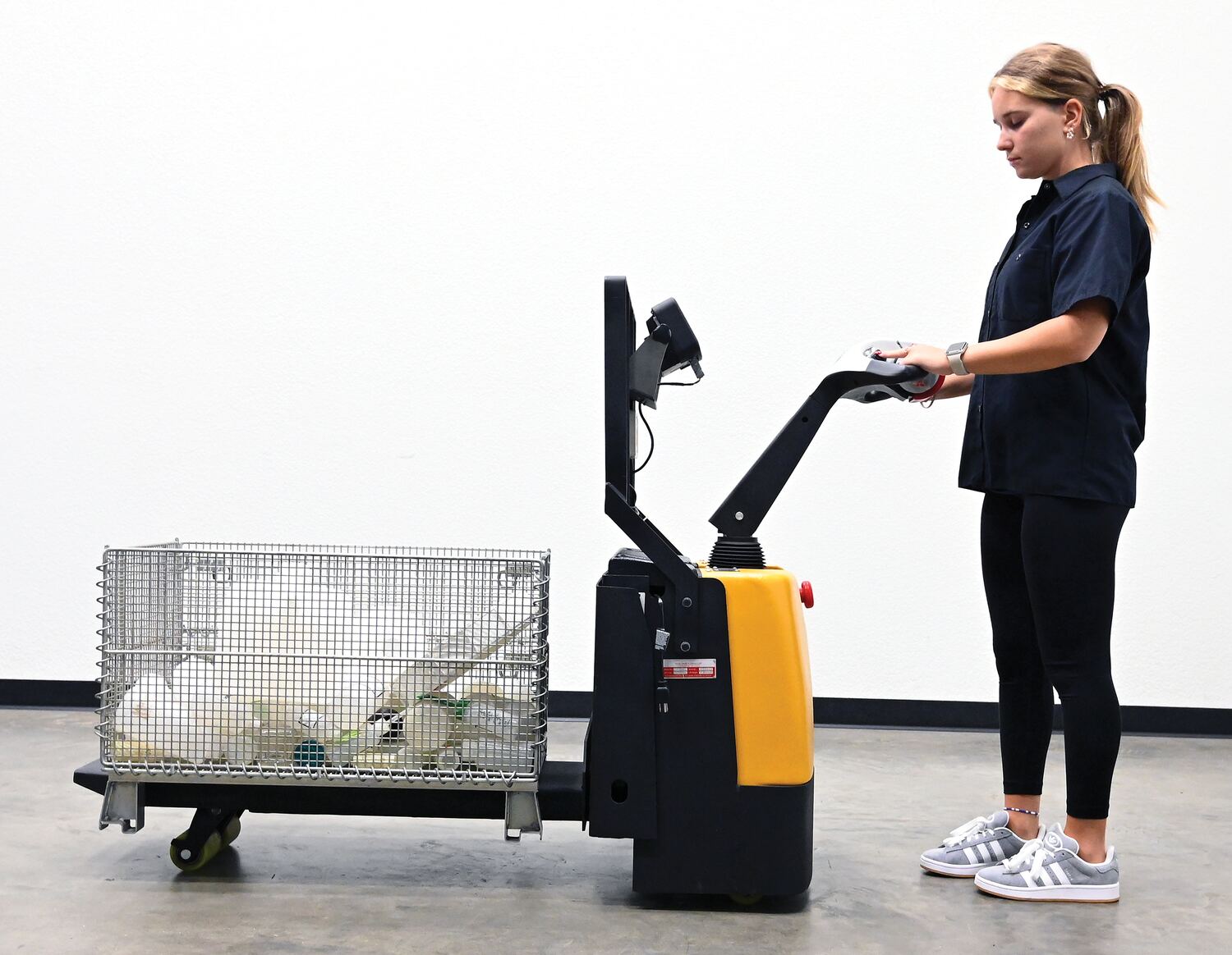 There are jobs where a standard electric pallet truck will suffice, but sometimes the job requires something unique. With the single fork electric pallet truck that requirement is fulfilled. The one fork design enables users to pick up and transfer items with a single fork pocket that would previously be difficult to maneuver such as half size pallets or bulk containers. With a walk behind set-up, the controls are organized in an accessible central location on or near the driving handle. This unit is battery operated for consistent steady use. (2) 12V AGM batteries standard. Powder-coated finish for baked in added toughness.