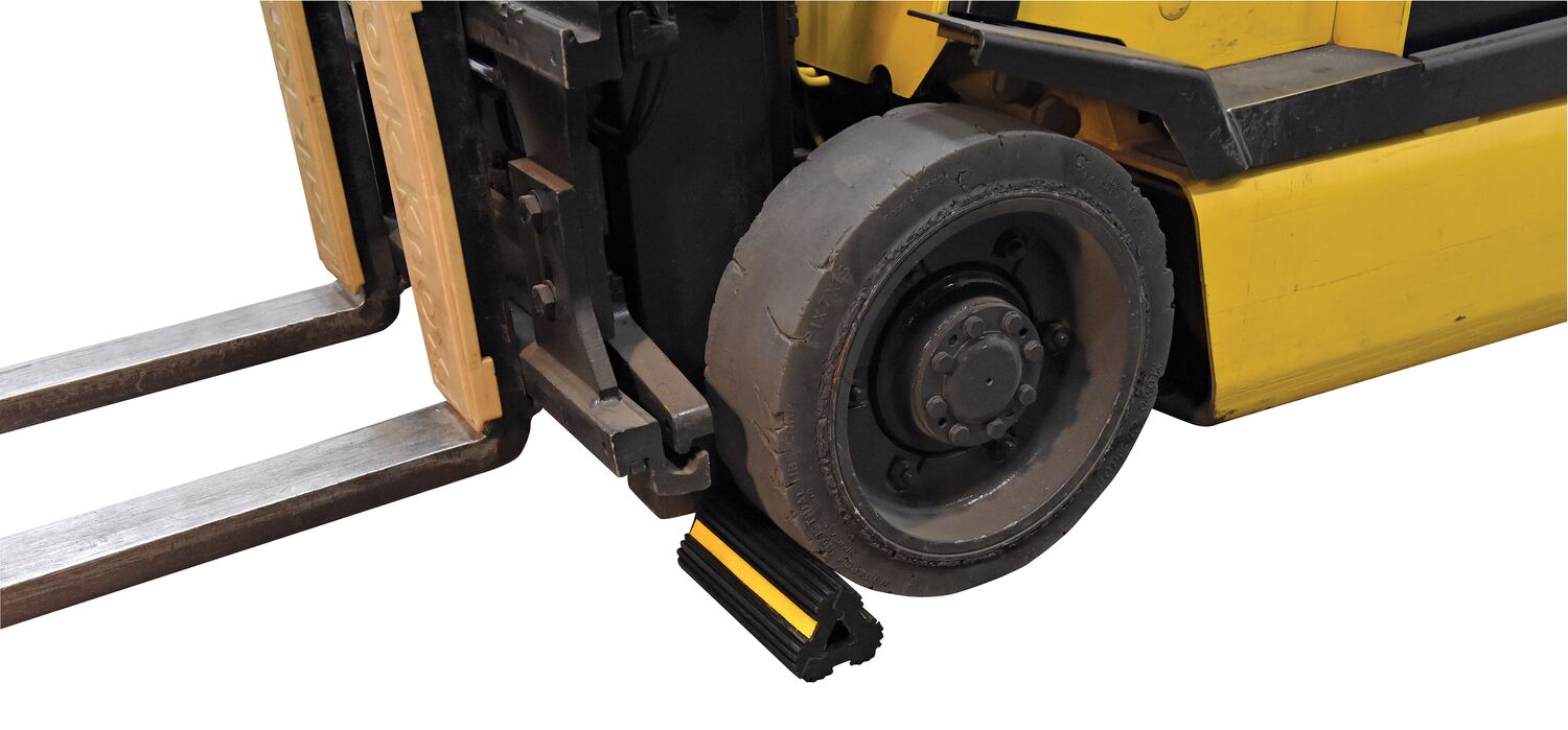 Extruded Rubber Wheel Chock 4-1/2 In. x 10 In. x 3-3/4 In. BlackThe rubber Wheel Chock is constructed of reinforced rubber to provide a sure grip on virtually any surface. The curved surface contours to fit tires. Rubber resists tearing, abrasion, ozone weathering, etc. The functional design is durable in all weather conditions.