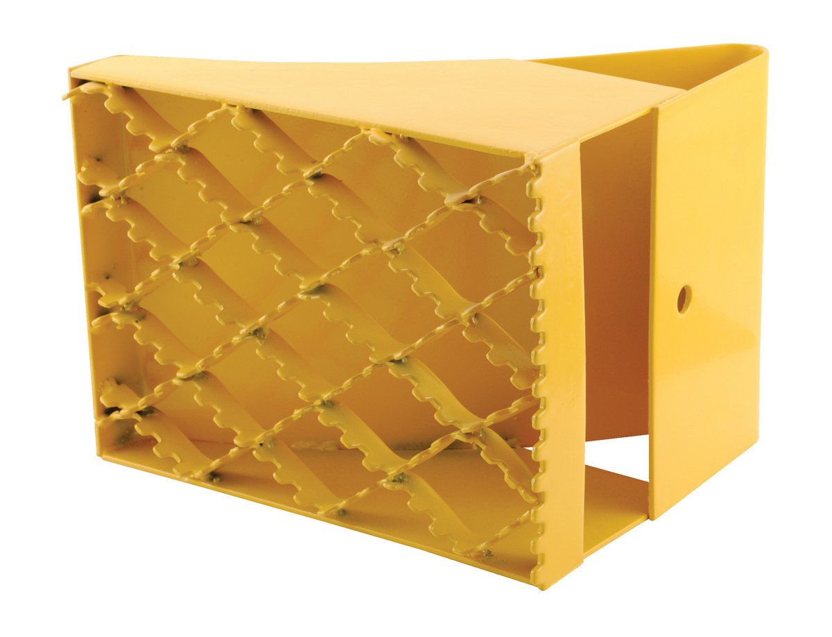 Fabricated Steel Wheel Chock 10-3/4 In. Length YellowThe formed steel wheel chock is perfect for on the go or at the shop. The unique design provides control for the user to securely stabilize the object at hand. The minimal weight of the chock lends itself to simple transference and maneuverability. The compact nature of the unit is great for storage when not in use.
