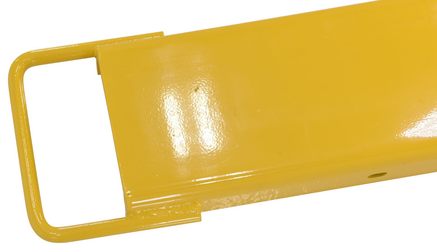 Steel Fork Extensions 6 In. x 72 In. 4,000 Lb. Capacity YellowProvide the extra support needed to lift long or large objects with a fork truck using a pair of fork extensions. Welded steel construction with cast steel tips. Steel retaining strap prevents fork extensions from sliding off forks during use. Powder coat yellow finish. OSHA regulations require that extensions are no more than one-hundred and fifty (150) percent of the existing fork length. Insert loop at the tip of the fork and slide it up at a forty-five (45) degree angle. Then, lay it down over the existing fork. To be used with class 2 and class 3 forks only.
