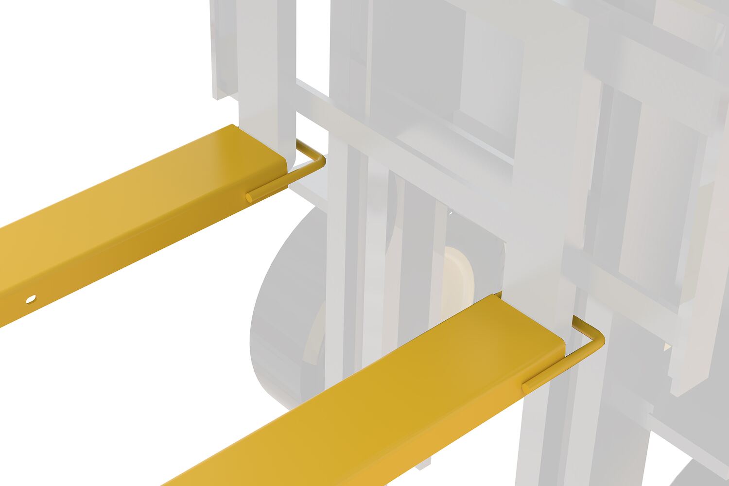 Steel High Strength Fork Extensions 5 In. x 63 In. 4,000 Lb. Capacity YellowFork extensions are the perfect accessory for new or existing forks. The high strength material provides extra support needed to lift large heavy objects with a fork lift. These models are almost 40% lighter than standard fork extensions. A powder coat finish is included to diminish scraps and minimize abrasion during use. To be used with class 2 and class 3 forks only. There are two handles included on each fork extension. The larger of the two is welded to the outside of the extension and it designed to go around the heel of the fork. While the smaller of the two handles is welded to the inside of each extension and is located at the front of the unit (opposite end). This handle is designed to assist the user while installing or removing the extension.