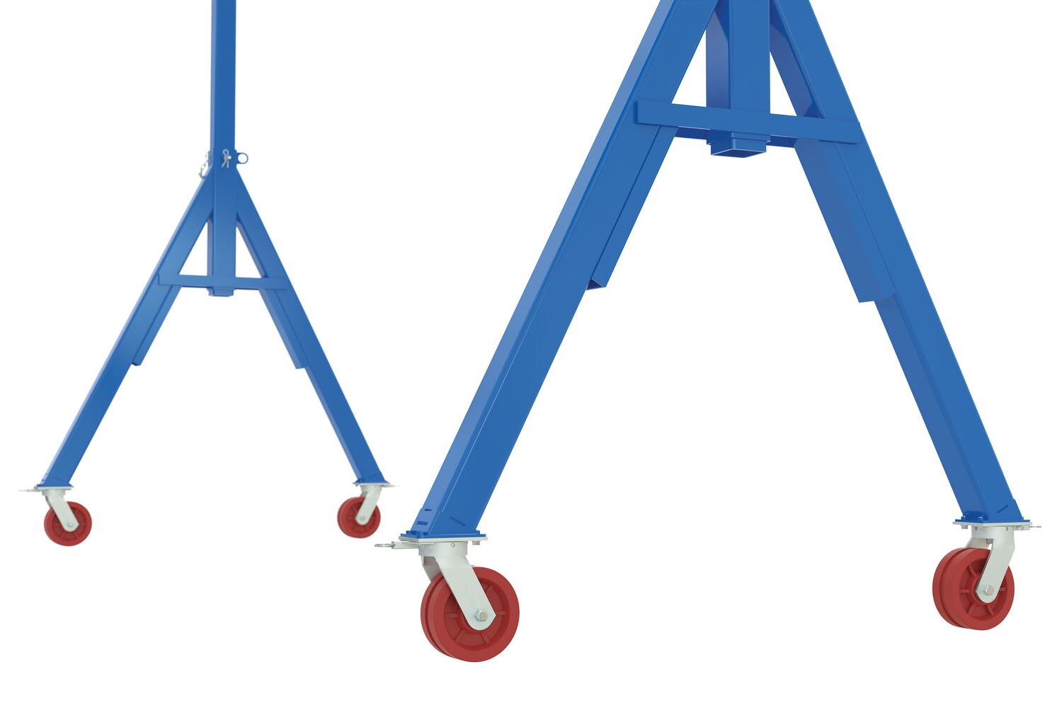 Steel Fixed Gantry Crane with V-Groove Ductile Steel Casters 10 Ft. 8000 Lb. Capacity BlueThe fixed height steel gantry crane is designed for transporting and positioning materials along the beams length. The solid steel construction will provide years of service, while the painted blue finish will keep the models protected from surface ware. Unit comes standard four (4) V-groove casters, allowing for quick movement and positioning adjustments. The unit is an economical and efficient way to lift and raise products, diminishing the need of additional personnel. The fixed height design allows for constant use in a particular setting without the need to maneuver the overall height of the unit.
