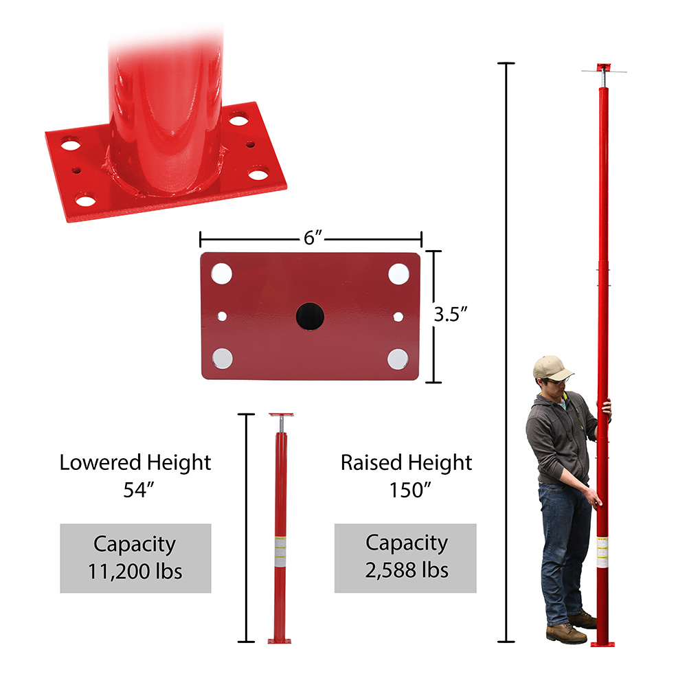 | Height Minimum/Maximum (in.): 54 to 150 | Minimum Height Capacity (lb.): 11200 | Maximum Height Capacity (lb.): 2588 |