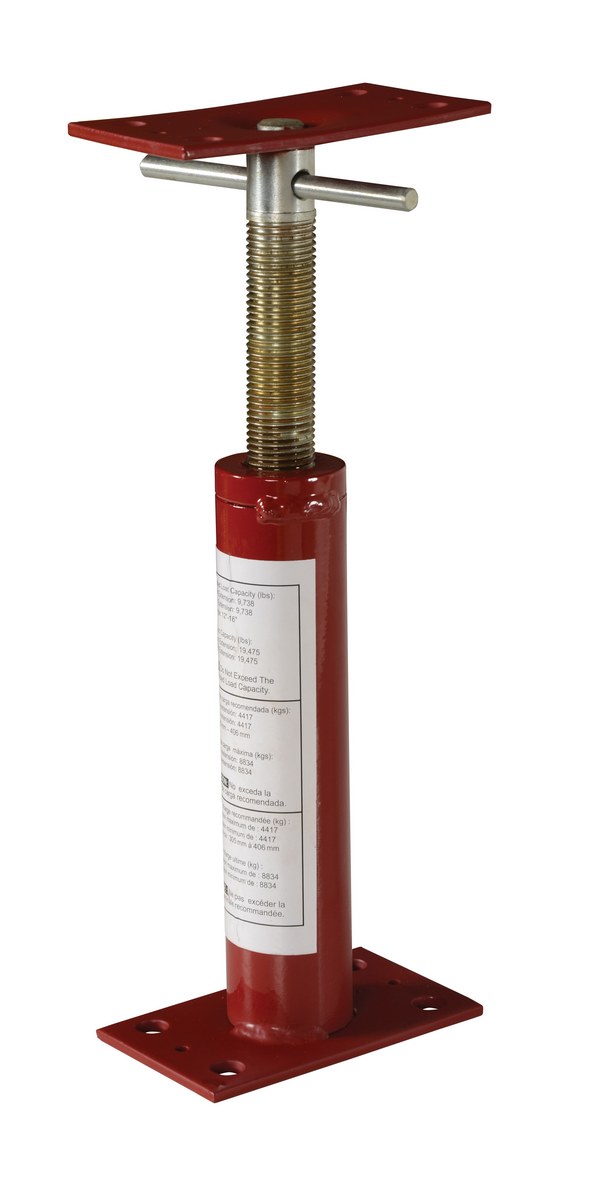 Basement Floor Jack 16 In. Maximum Height 9,738 Lb. Capacity RedThis basement floor jack provides extra support for leveling and stabilizing floor beams and joists during construction and repairs. Telescopic style with removable pins lets you properly position the brace for better leveling. Includes locking pins and turning bar for easy height adjustment. Rugged all welded steel construction. Red oxide finish.