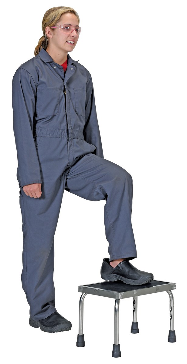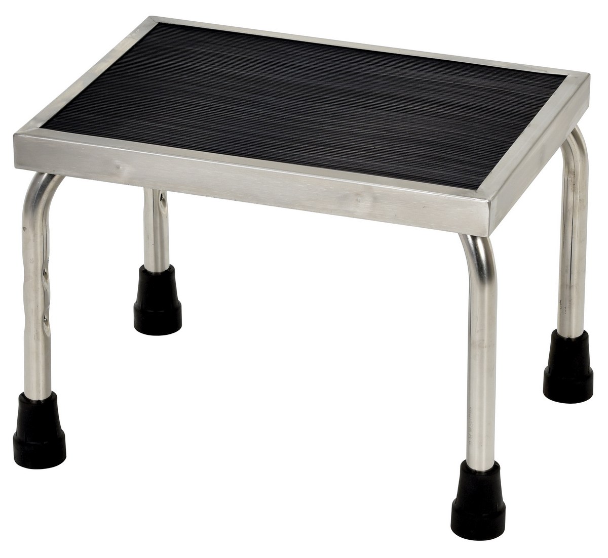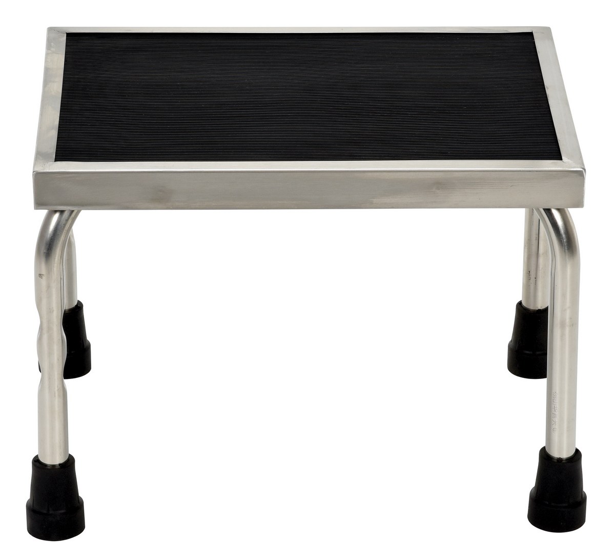 The stainless steel step stand is ideal for the school, home, or industrial facilities. The unit is designed to diminish risk while reaching high objects. The step stand is constructed of stainless steel for durable and long lasting use in the harshest of conditions. A slip resistant step surface and bottom foot grips are utilized for stability and steadiness.