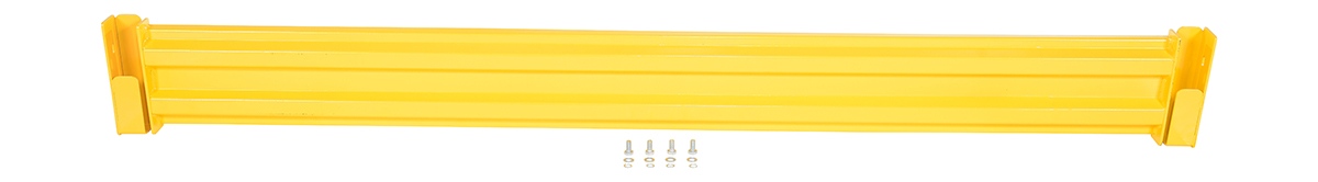 Steel 2 Ribbed Drop In Style Guard Rail 90 In. Length YellowProtecting equipment, inventory, and most importantly individuals from damage or injury is always a concern. But, with a structurally strong steel guard rail those worries can be eased. This rail is double ribbed for impact resistance both indoors and out. With the drop-in style rail design, accessibility is simple and rails can be positioned quickly. To put in place simply slide the rail sections into the post saddles. Powder coated finish for built in added toughness. Additional posts are available and sold separately. If adding a rail to an existing rail and post section, only a single post is needed.