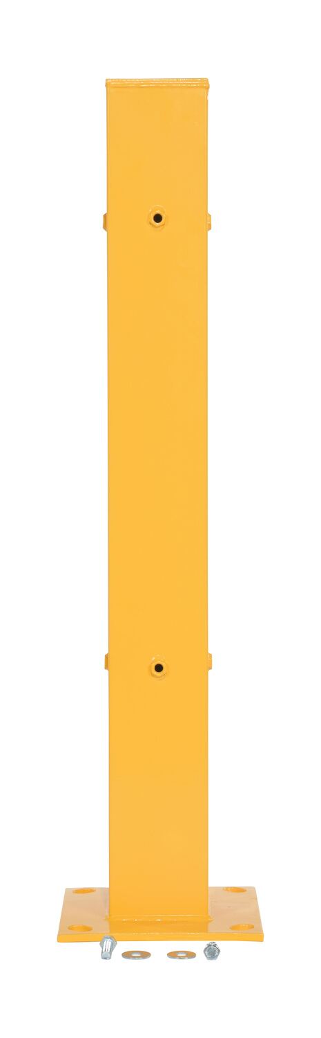 Steel Bolt On Tubular Guard Rail Post 2 Ribbed 42 In. Length YellowThe Tubular post is an addition to the guard rail system. The post is designed with a steel construction for the utmost support strength. The yellow finish allows the post to be both visible and weather resistant. Includes mounting holes on three sides for use as a corner or center post. Posts come with rail mounting hardware. Floor mounting hardware is sold separately.