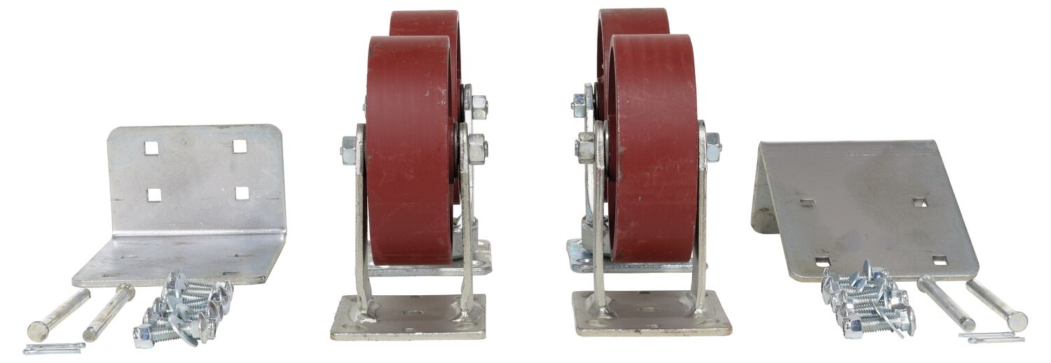 Ductile Steel Caster Kit 6 In. x 2 In. 8,000 Lb. Capacity MaroonCasters for the self-dumping hoppers create a more worthwhile portable unit. Casters are constructed of glass filled nylon for strength and durability throughout a lifetime of use. The high capacity allows the simple transport of heavy loads promoting task efficiency. Casters are bolted-on by utilizing the factory stamped hole in the fork tubes.