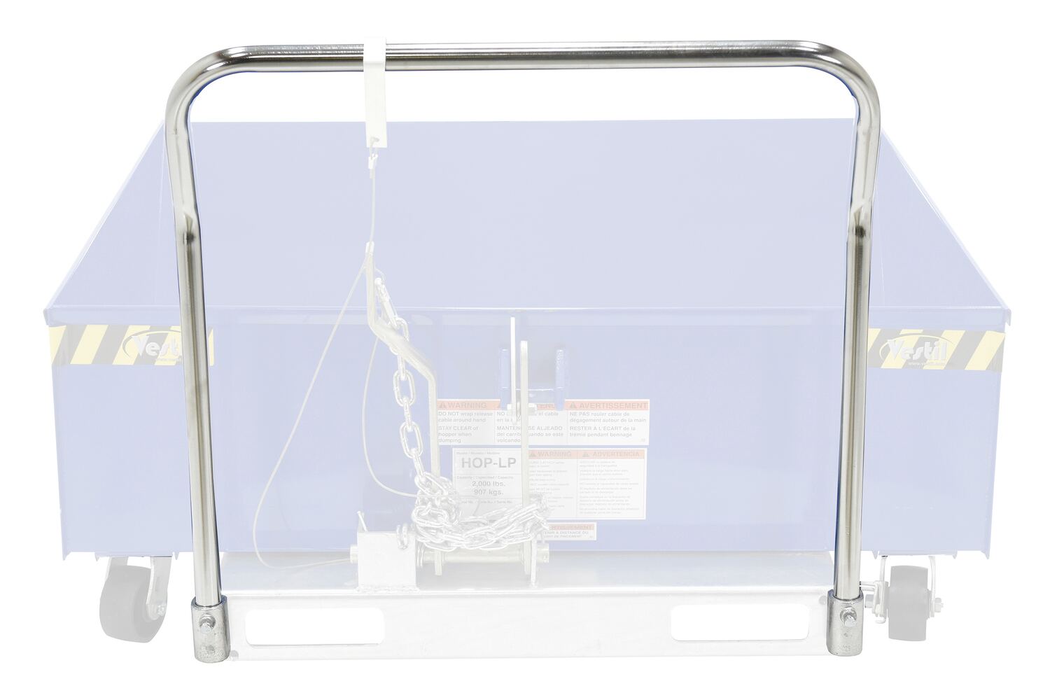 Steel H-Hopper-Handle -Kit H-100 Thru H-200A handle kit turns what was once a standard H style hopper with casters (casters sold separately) into an easily movable unit. The handle provides the user with a designated place to push or pull the hopper. With an upright design the user is limited to the amount of bending that is needed during transference of the hopper.