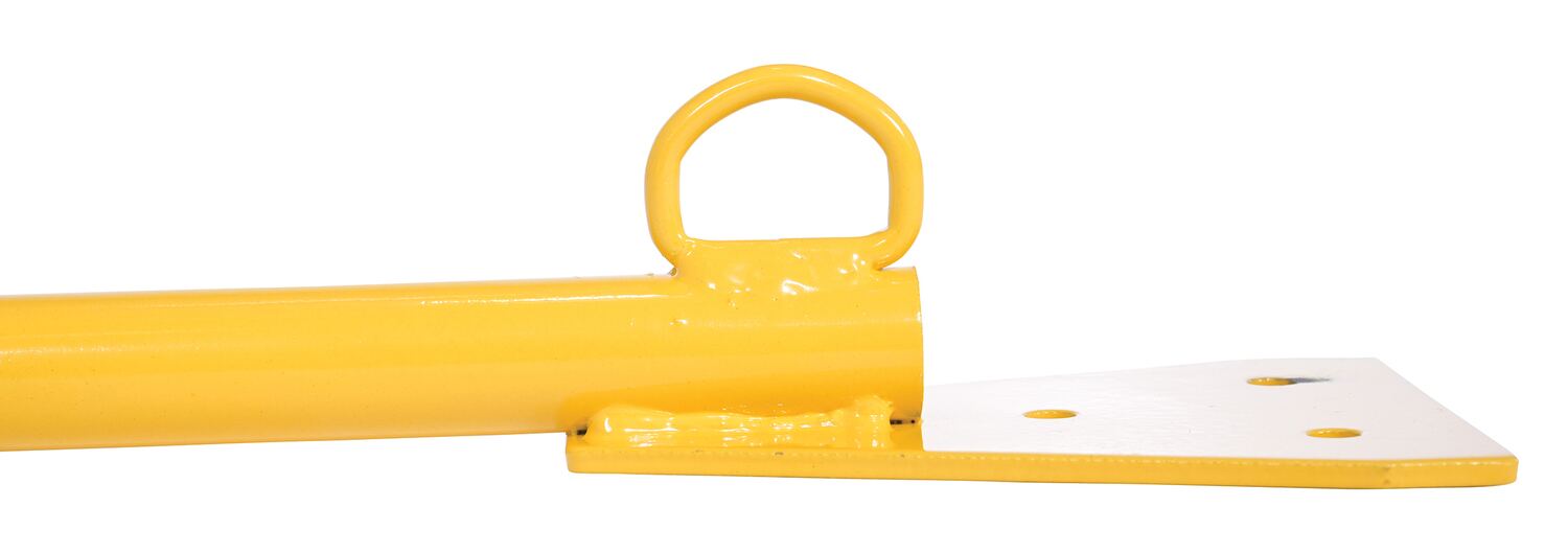Steel Ergonomic Wheel Chock Handle YellowThis optional Wheel Chock ergo handle provides an ergonomic style handle that prevents bending to pull wheel chock from tire. D-ring provided for attaching security chain (chain not included).