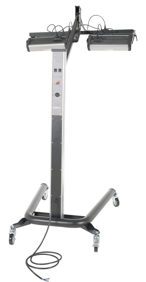 Steel Infrared Heater 6 Panel 230 Volt 1 Phase Black/SilverAn infrared heater provides beneficial warmth to a variety of industrial areas. A simple to use control panel allows the function and heat settings to be utilized in the best possible way for maximum efficiency. An adjustable heater arm gives the user the ability to maneuver the heating elements into a position that best fits the type of surface that is being heated. Unit includes casters to easily maneuver the unit to and around the work area. A robust structural construction endures work place conditions that are continually changing.