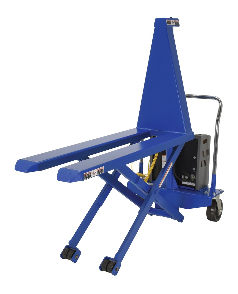 Steel DC Powered High Lift Table 20 In. x 48 In. 2500 Lb. CapacityThe high rise lift truck increases employee ergonomics and machine efficiency and productivity. It reduces muscle fatigue and body injuries by bringing material closer to actual worker height. It's DC powered with an on-board battery charger standard.
