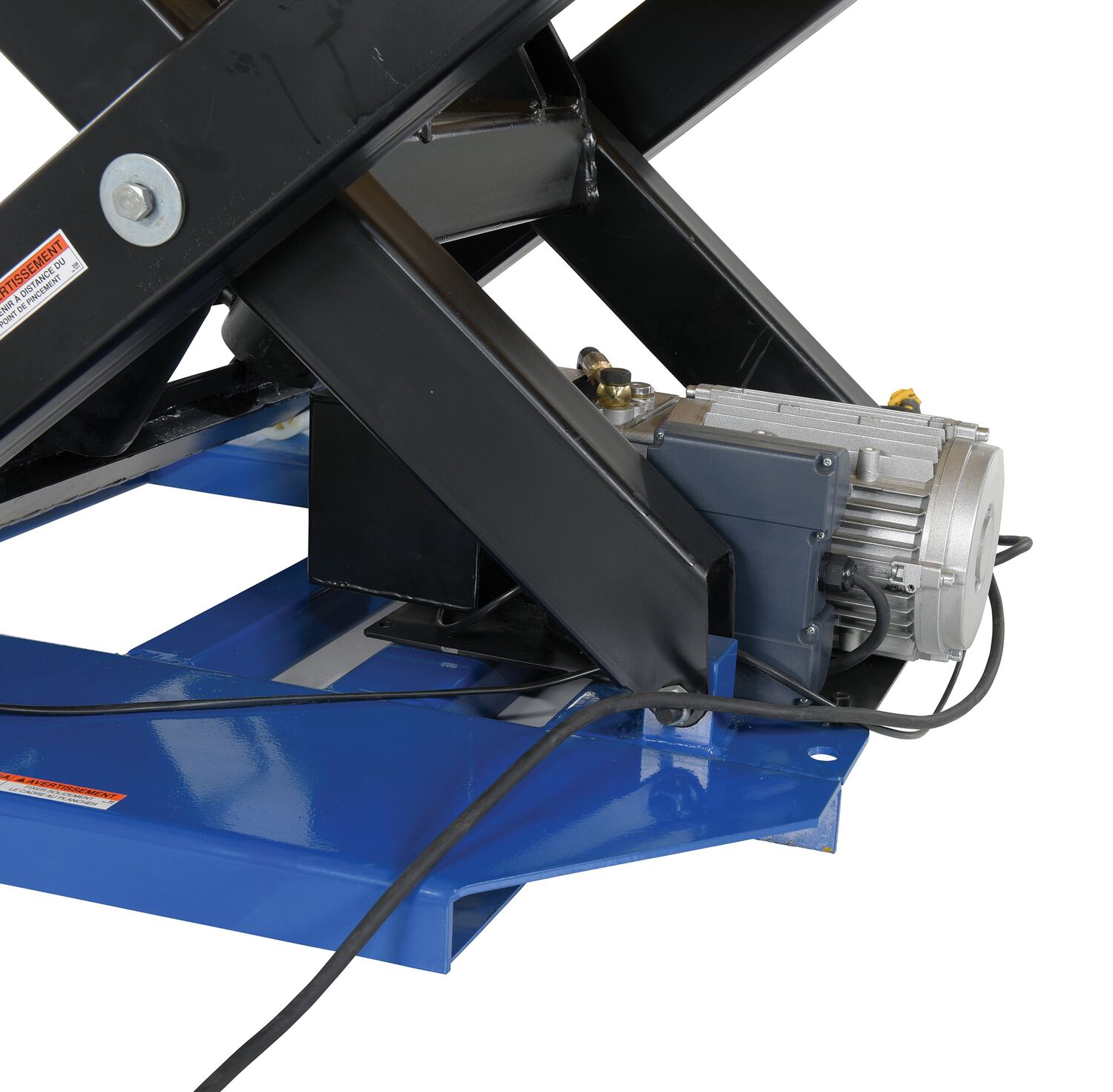 Steel Powered Lift Table with Manual Rotation 4000 Lb. Capacity Blue / YellowPowered lift tables are great for a variety of manufacturing and warehousing facilities. The unit comes with a manual carousel which gives the user the ability to stop and start at any moment and with as little movement as possible. The lifting is controlled by a powered a foot control. Powder coated finish to limit abrasions during to use.