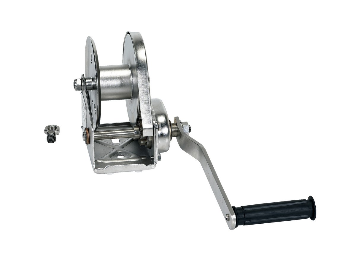 Stainless Steel Hand Winch 1200 Lb. Capacity SilverThe Stainless Steel hand winches are constructed of 304 stainless steel for corrosion resistance. Machine-cut spur gears ensure smooth accurate operation, while protective gear covers keep dirt out and help prevent worker injuries. Winches feature a drum clamp for easy attachment of wire rope (not included) and an automatic brake for positive load control during lifting and lowering operations.