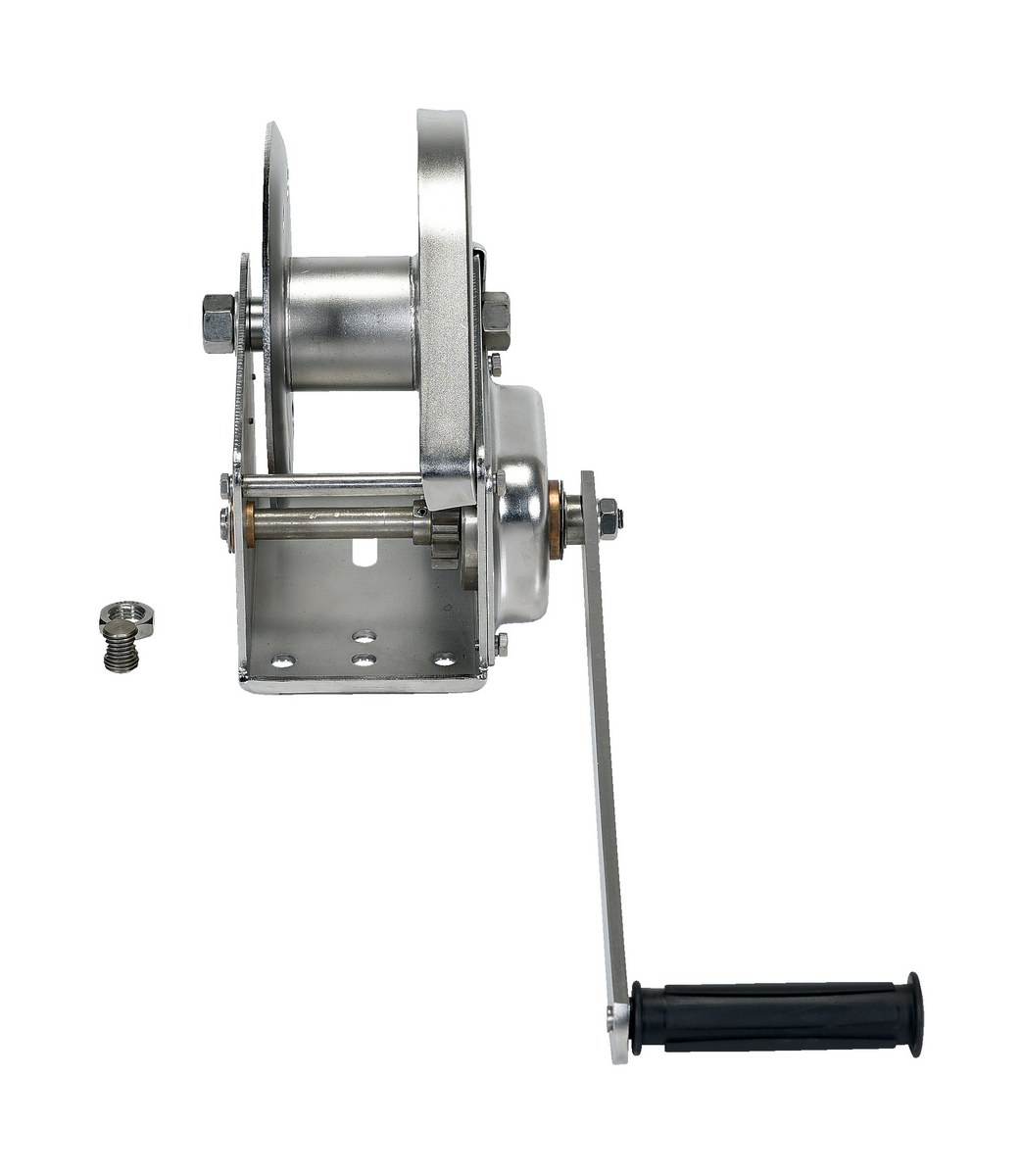 Stainless Steel Hand Winch 1800 Lb. Capacity SilverThe Stainless Steel hand winches are constructed of 304 stainless steel for corrosion resistance. Machine-cut spur gears ensure smooth accurate operation, while protective gear covers keep dirt out and help prevent worker injuries. Winches feature a drum clamp for easy attachment of wire rope (not included) and an automatic brake for positive load control during lifting and lowering operations.