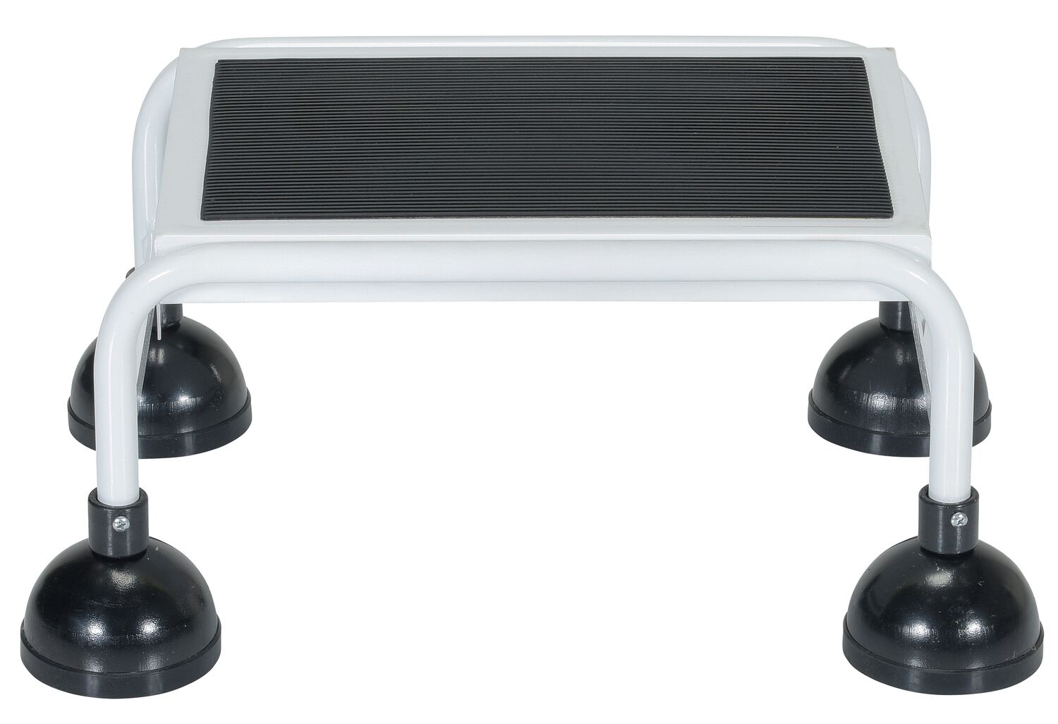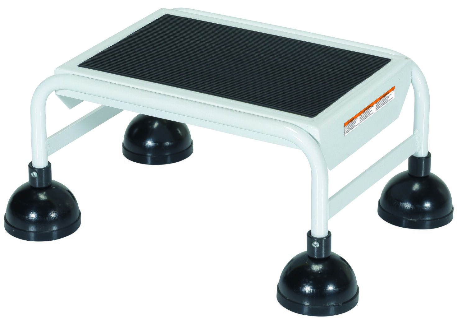 Steel Commercial Spring Loaded Ladder 1 Step 16 In. Wide with Anti-Slip Rubber Mat 300 Lb. Capacity WhiteCommercial users of rolling ladders now have an attractive and economical alternative to the traditional warehouse rolling ladders. This commercial spring loaded ladder has a sleek design, also provides maximum safety and convenience. The all directional spring-loaded swivel casters feature steel dome protection which includes rubber pad bottoms to minimize movement. The powder coat finish provides a durable attractive appearance.