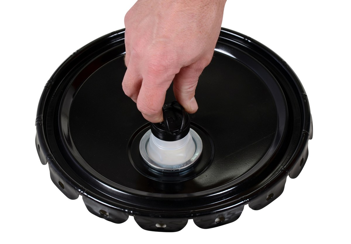 Steel UN Rated Spout Top Lid 5 Gallon BlackSteel lid for use with steel pail. UN rated with spout.