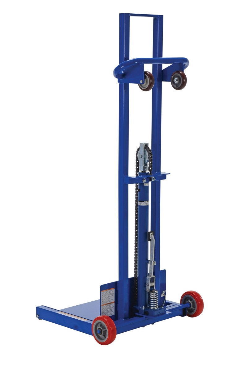 Steel Low Profile Lite Load Lift With Foot Pump and Fixed Wheels 20 In. x 20 In. Platform 400 Lb. Capacity BlueThe Lite load lift is ideal for lifting and transporting loads from delivery trucks to docks, or use to inventory storage systems. This lift is easy to operate with a foot pump and a steel construction. The unit rolls smoothly on poly-on-poly rear wheels and semi-steel front wheels. Located on the handle are two (2) rollers to ease loading into delivery trucks.