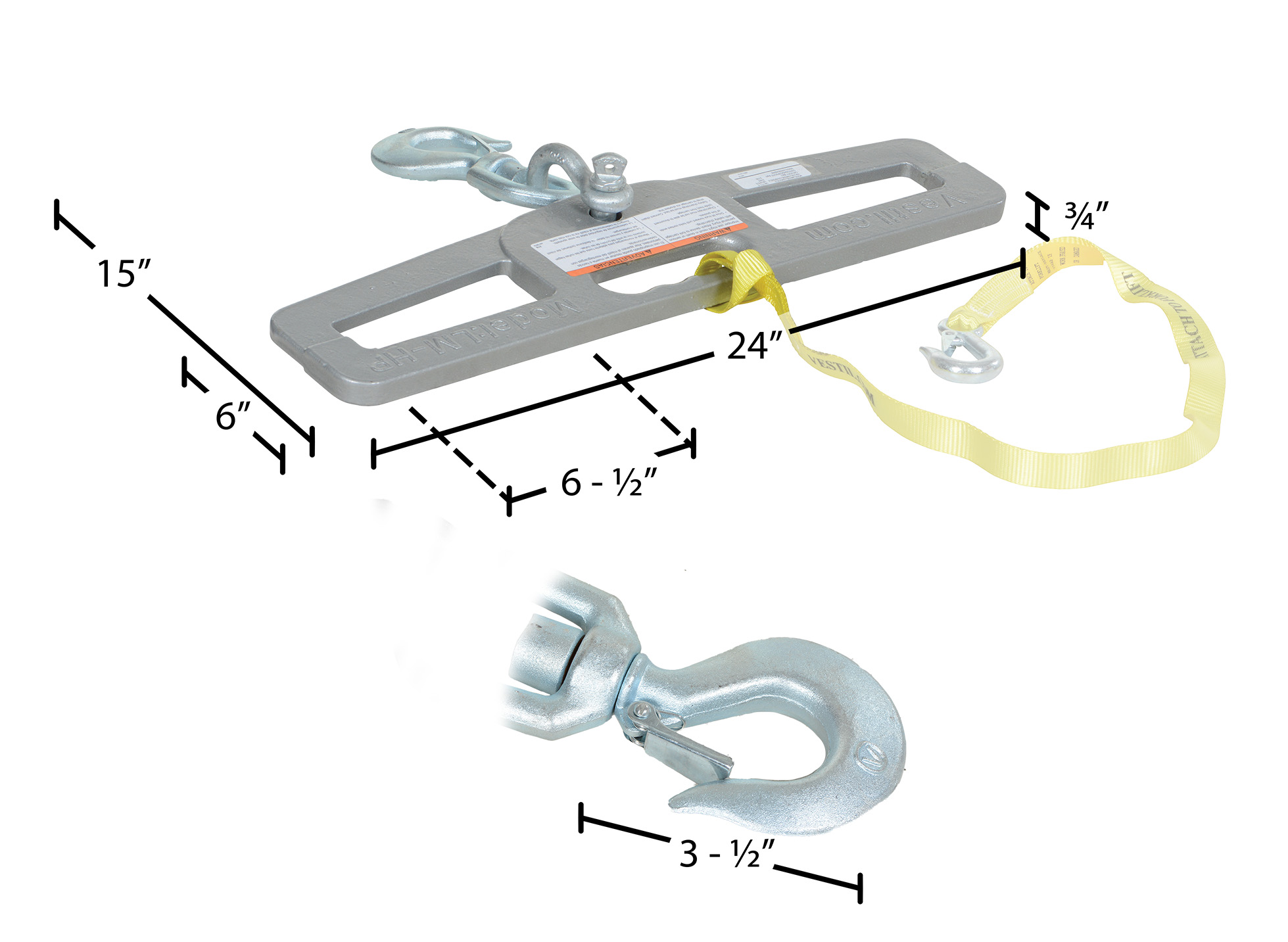 Steel Fork Truck Hook Plate Swivel 6,000 Lb. Capacity SilverThe hook plate enables any fork truck to safely lift a load using chains, cables, or slings. Features slanted fork openings to prevent the hook plate from being used upside down. A hook with anchor shackle is included.