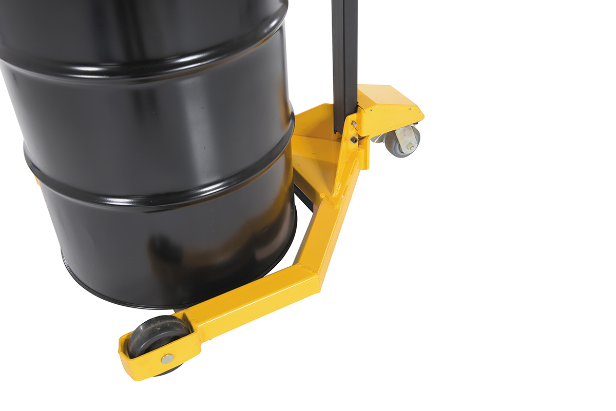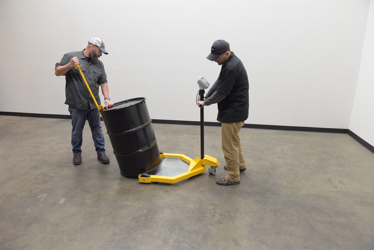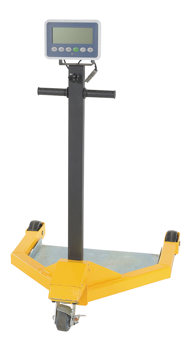 Why bother taking the time to weigh drums at a designated location when you can do it on the go. The low profile drum scale allows the user to weigh the drums while they are being transported. Simply maneuver the drum onto the platform and a read-out of the weight will appear on the screen located near the handle of the dolly. Powder coated black and yellow for increased toughness during daily use. Poly casters are included for simple and a smooth rolling across a variety of surfaces. When not in use, the handle folds down onto the loading platform for a simple storage.