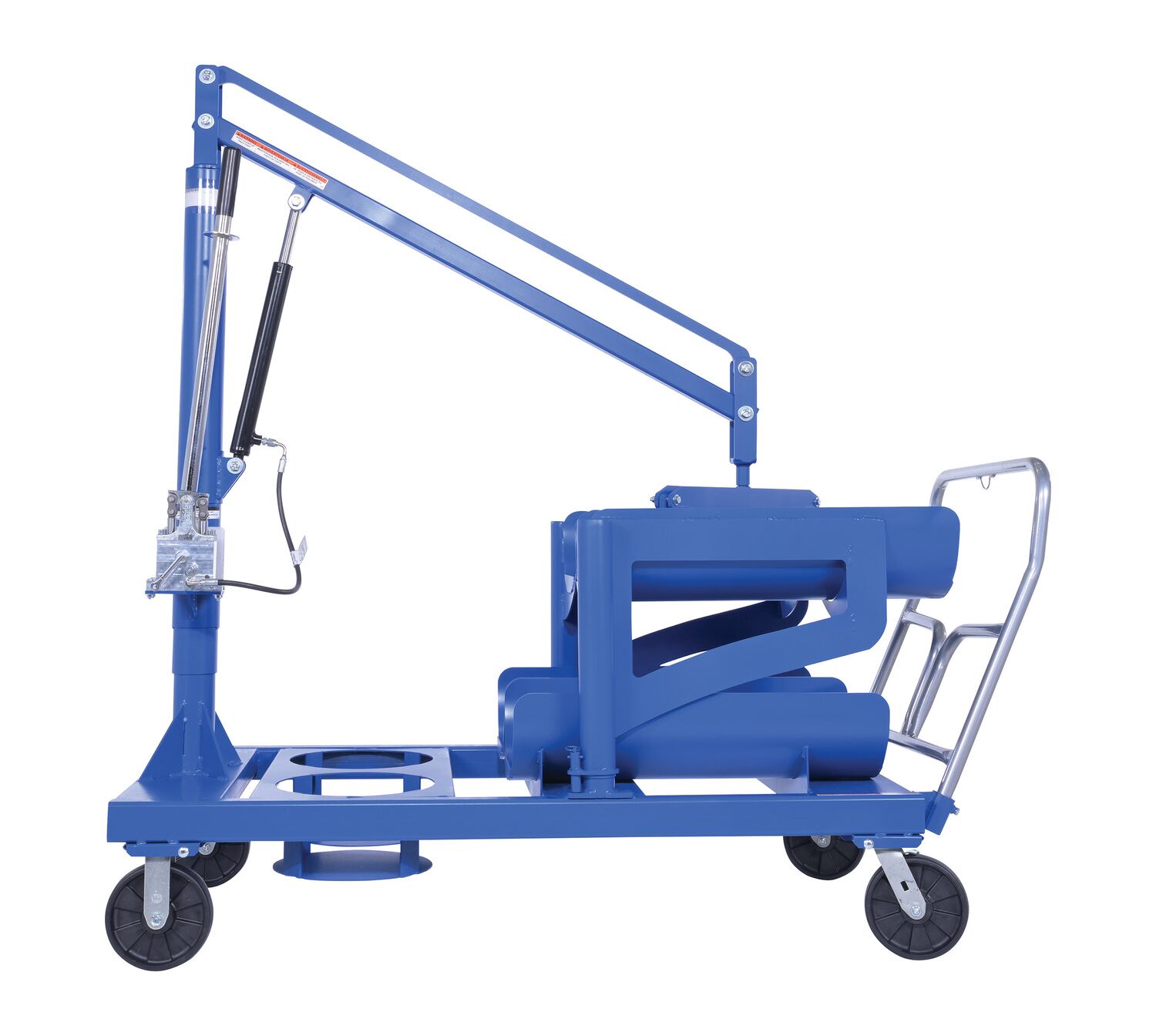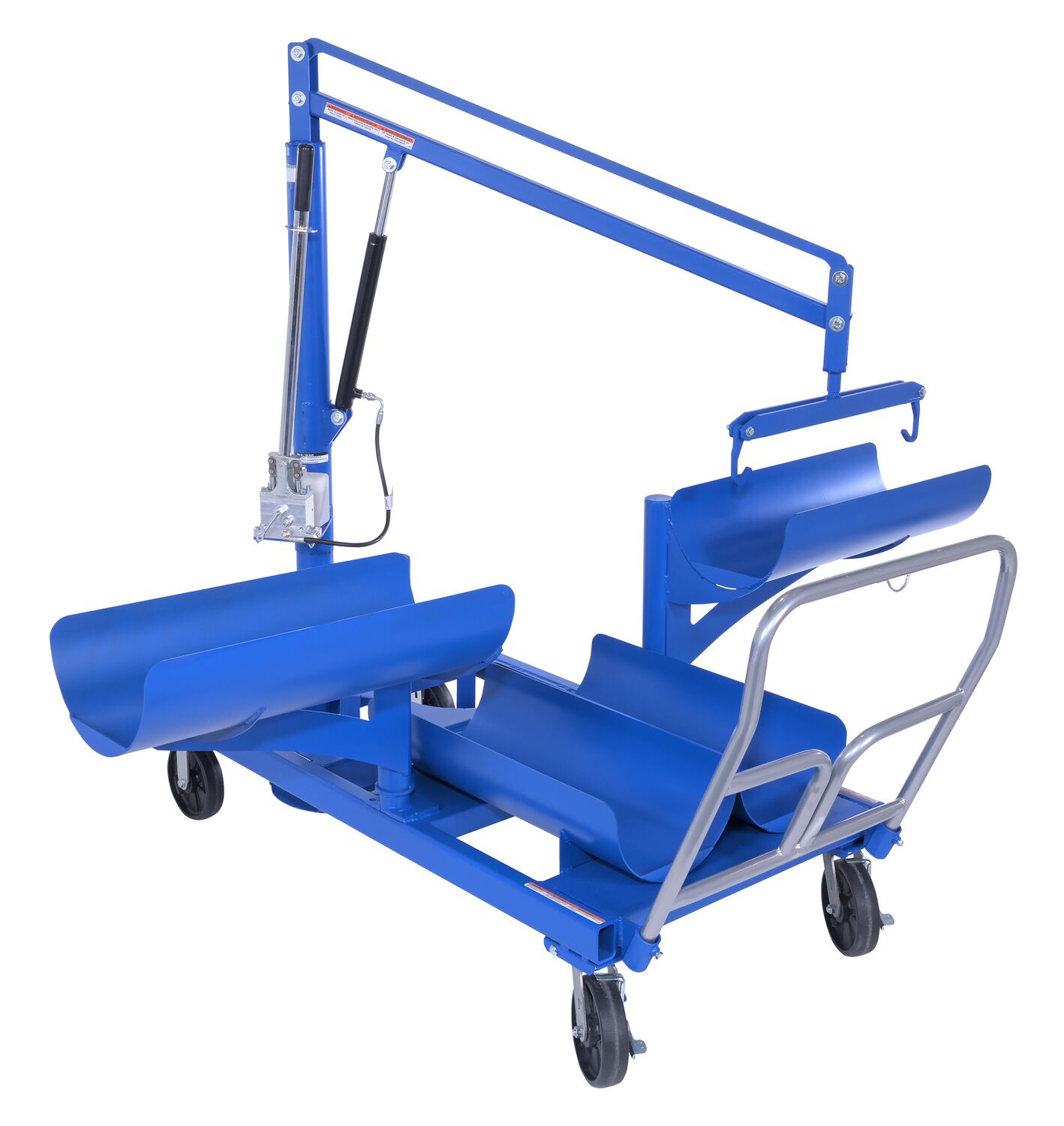 Steel LP Tank Truck 136-7/16 In. x 33-13/16 In. x 94-9/16 In. 6 Tank Capacity BlueFinally an easy answer to lifting, storing, and transporting problems associated with LP tanks. This all-in-one LP tank truck allows users to transport LP tanks where needed. The built-in crane can be used to safely load full tanks into fork trucks. The crane pivots for maximum versatility. The crane boom is raised and lowered with a manual hand pump hydraulic lift. The tank attachment at the end of the boom automatically clamps to each end of the cylinder. The built-in racks are ideal for LP tank storage-racks. Store two (2) tanks in the vertical position and four (4) tanks in the horizontal position. Truck includes a push handle with casters for portability.