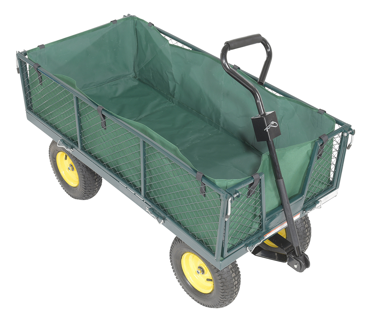 Liners are the perfect addition to landscaping carts. Carts with steel mesh designs can’t easily carry small pieces of debris. By utilizing the liner, small pieces of soil, sod, and fragments can be easily transported. The liner simply fits into the bottom of the cart and over the sides. The liner is constructed of canvas for its durability and strength during daily use.