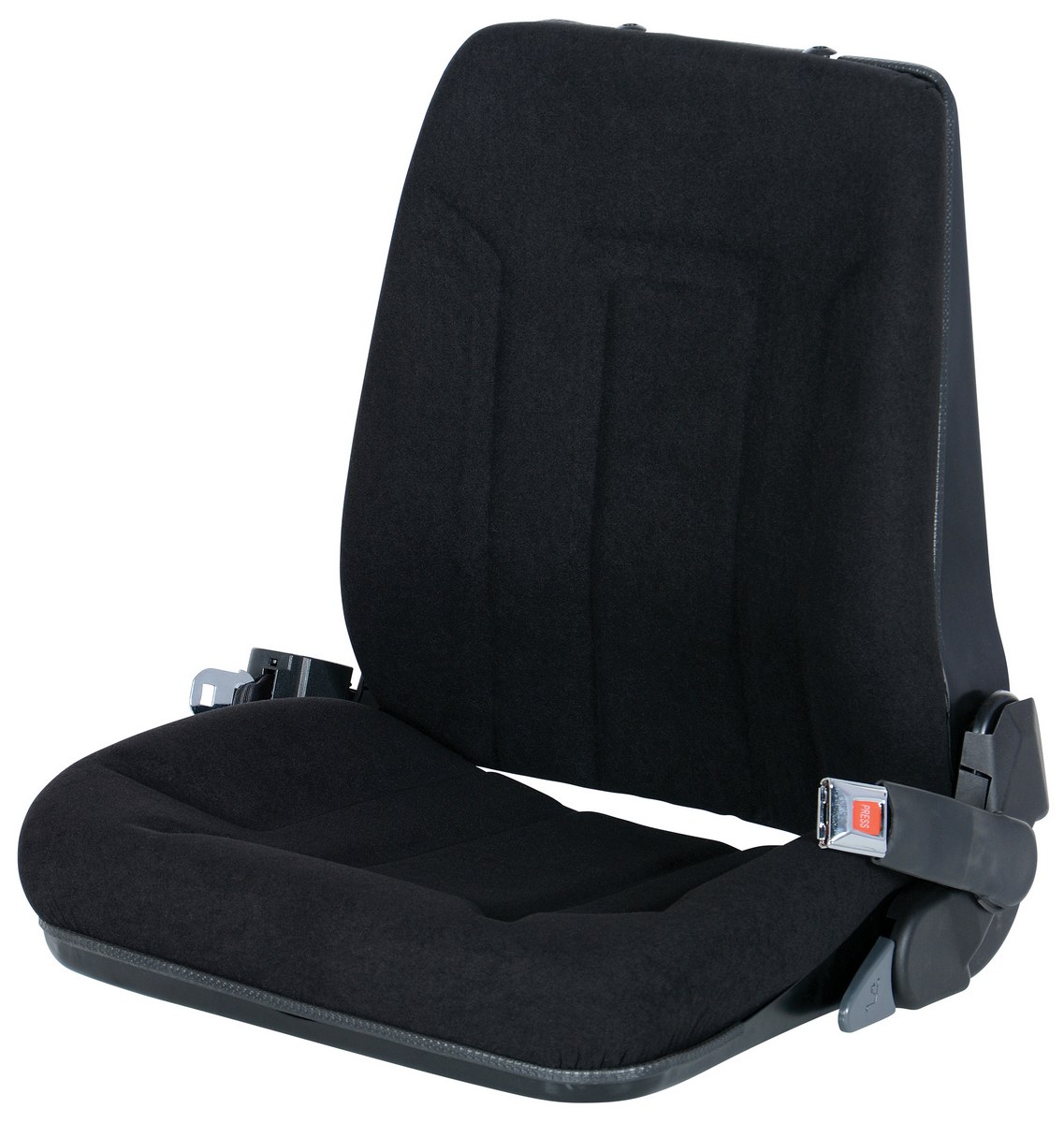 Cloth Deluxe Fork Truck Seat with Seat Belt 4-1/2 In. x 4-1/2 In. x 4 In. BlackThe Fork Truck seat has an ergonomic and comfortable seat design to help provide optimum body support for individual operators. Replace worn or broken fork truck seats with our easy to install universal mounting design. Standard features include: ergonomic seat design, cloth material, low profile design, safety seat switch, storage pocket, seat back angle adjustment, and retractable safety belt.