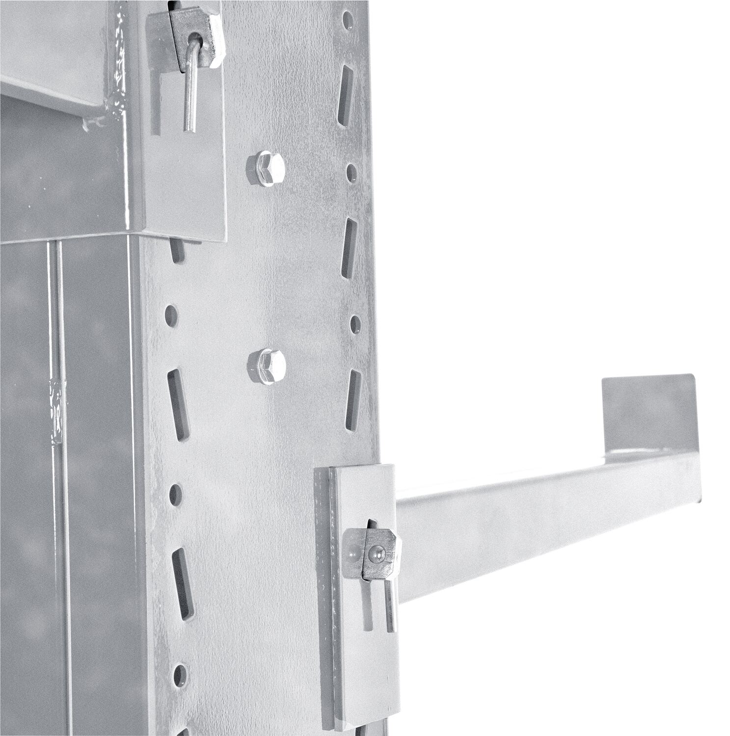 Galvanized Medium Duty Double Sided Cantilever Rack Kit 24 In. Arms 22,000 Lb. Capacity SilverThe Galvanized Cantilever rack systems are ideal for distributing and industrial settings. The galvanized steel design minimizes rust while providing a strong construction. The adjustable rack arms can be adapted to a customized position allowing the unit to fit the needs of individual circumstances.