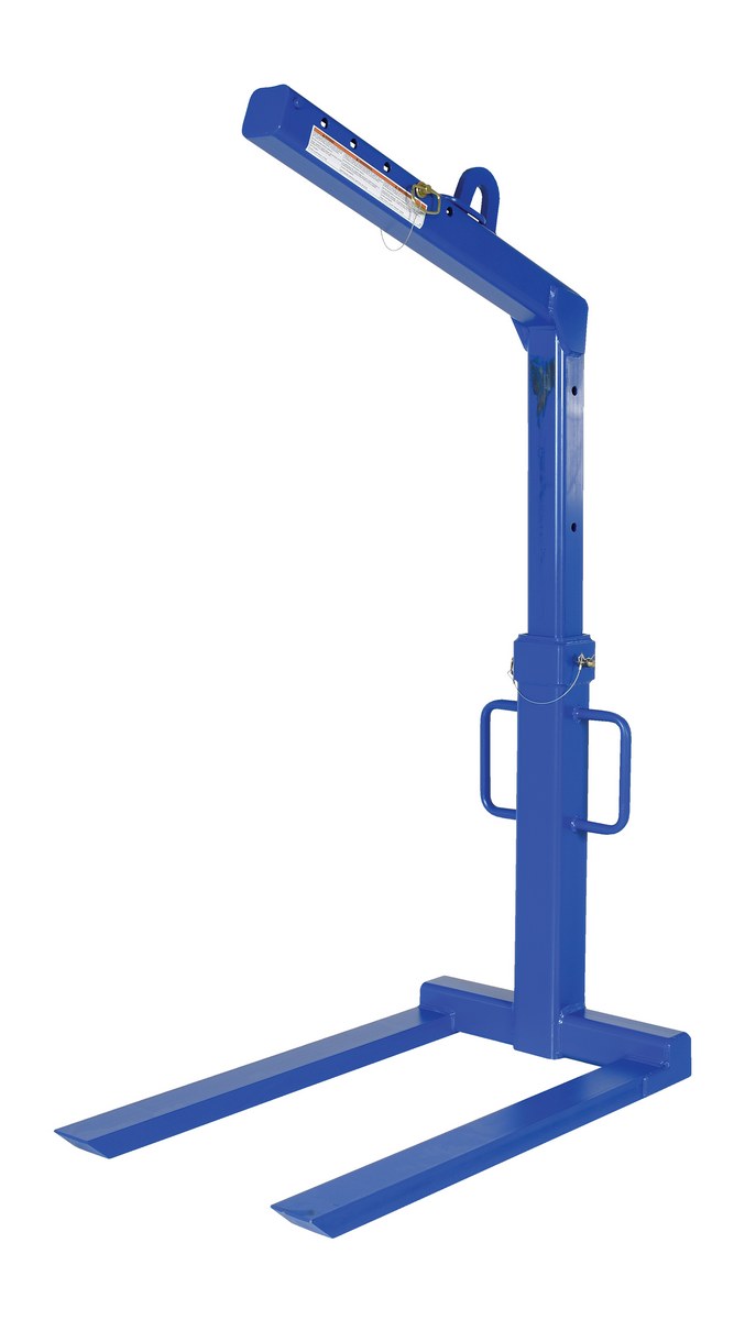 Steel Overhead Load Lifter Fixed 43-1/8 In. Fork 2000 Lb. Capacity BlueThe overhead load lifter is designed for lifting and moving pallets, skids and crates with an overhead lifting crane. Includes an adjustable bail for keeping the load level when moving. Includes three (3) height positions for use with different sized loads.