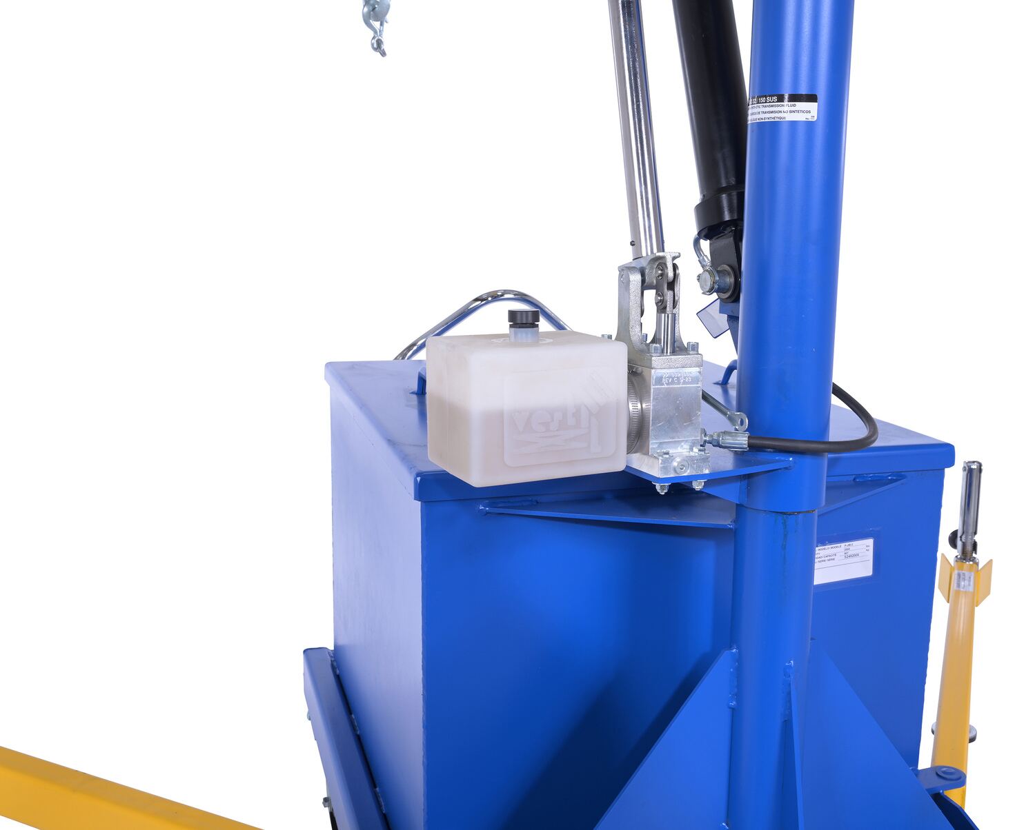 Steel Portable Cantilever Hoist 113-3/8 In. x 35-11/16 In. x 89 In. 2000 Lb. Capacity BlueThe portable Cantilever hoist is built for heavy lifting. The swivel crane makes for simple side loading and controlled lowering. Maximum arm length beyond the frame is 50-3/8". Unit is available with or without counter balancing ballast. Painted finish.