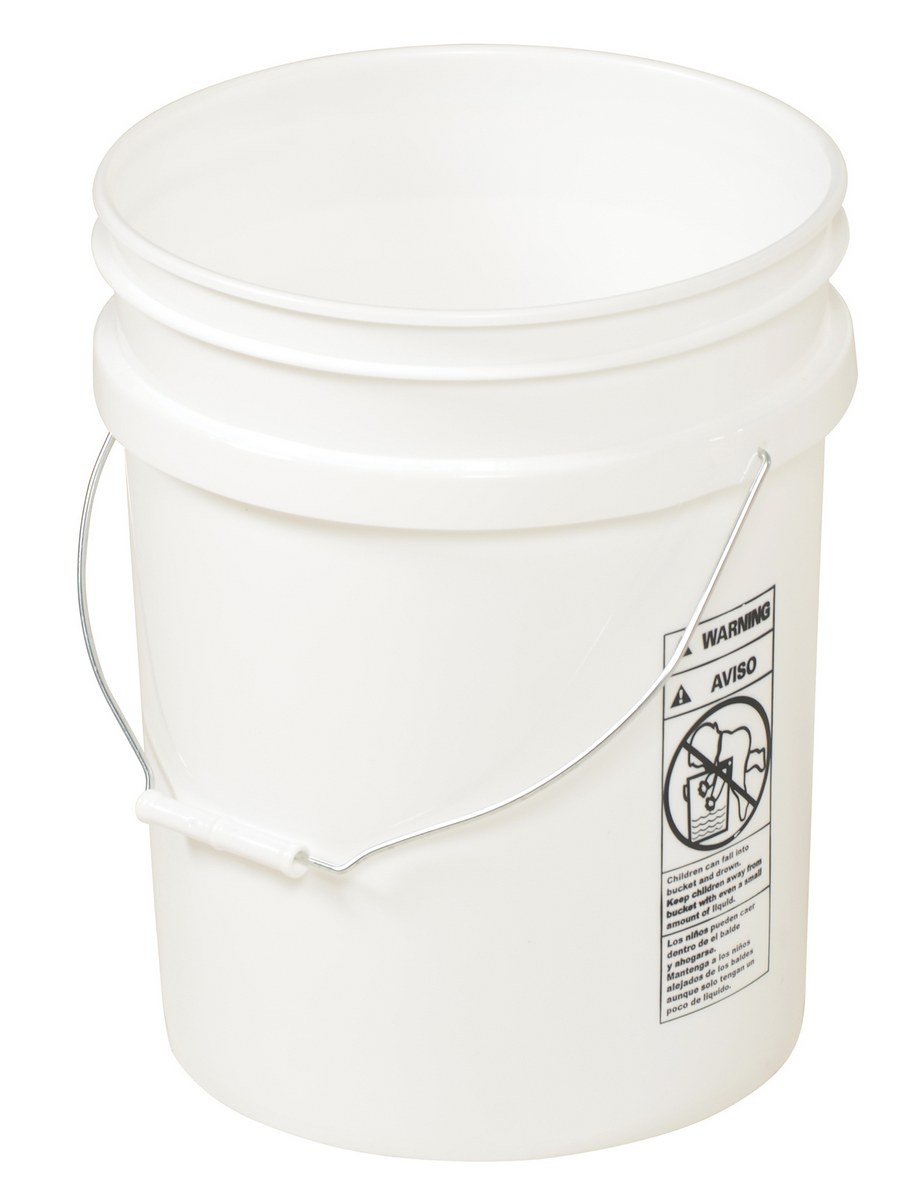 High Density Polyethylene Open Head Pail with Steel Handle 11-15/16 In. x 11-15/16 In. x 14-1/2 In. 5 Gallon WhiteThe open head pail is ideal for the construction and shipping areas. Strong enough for use in shipping applications and durable enough for the most demanding storage applications. This unit can be used with hot liquids as well as freezer applications.