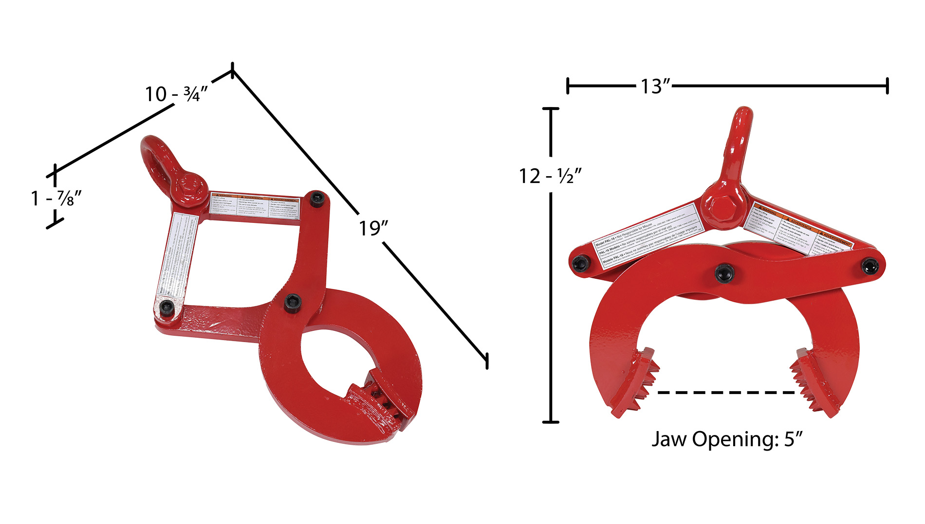 | Jaw Opening (in.): 5 | Closed Width (in.): 10-3/4 | Closed Height (in.): 19 |