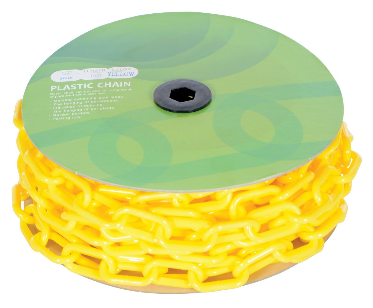 Plastic Chain Barricade 2 In. x 2 In. YellowPortable and lightweight plastic chain barricade is easy to position where needed most. Chain simply snaps onto post hooks. Unit is easy to assemble with snap-together parts.