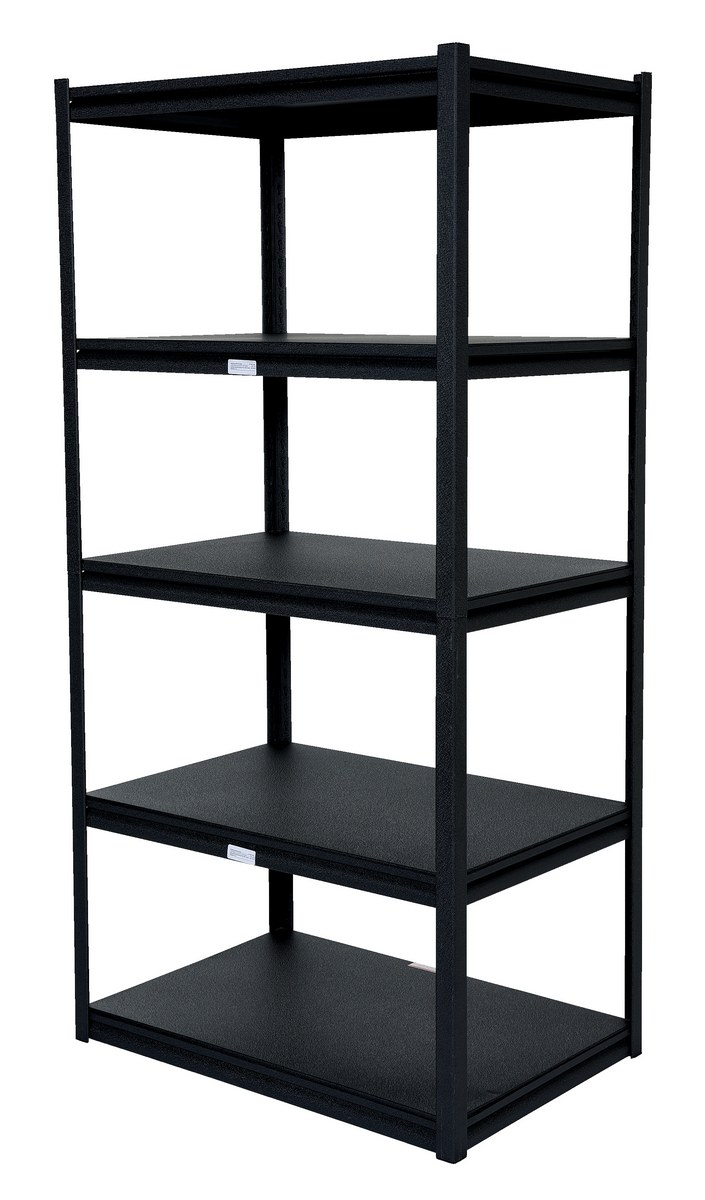 Steel Powder Coated Bolt-Less Shelving 36 In. x 24 In. x 72-1/4 In. 2000 Lb. Capacity BlackPowder coated shelving is constructed of steel with textured powder coat finish. Each model includes variable shelves for improved versatility. Shelving provides clear access from all four sides. A two (2) piece corner posts design. It ships knocked down which makes for easy assembly.