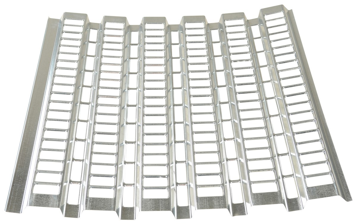 Open area rack decking is ideal for storing furniture, carpet, record files or products that require a uniform support. Fire protection friendly with fifty percent (50%) open design. Designed for pallet rack beam with deep racking. The bright galvanized finish makes the steel rack appear more industrial.