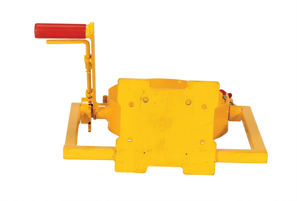 The pail attachment is designed for lifting, rotating and dumping pails. The unit is adjustable to accommodate pail sizes. The manual dumper lets the user unload the pail at the rate that best fits the conditions. A simple installation allows the user to obtain immediate use and diminish the amount of bending and lifting of heavy objects. A yellow finish promotes visibility and safety while transferring units.