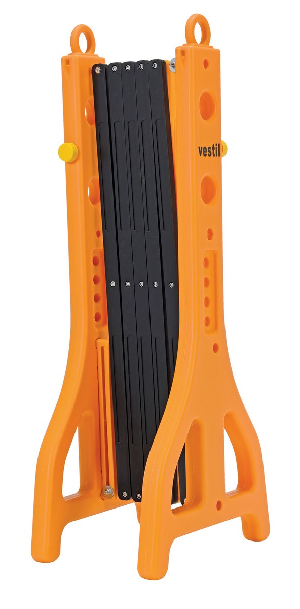 Expand-A-Gate is designed to set up quickly and easily wherever and whenever they are needed. Ideal for preventing potential accidents. Lightweight design allows personnel to quickly retrieve the gate and limit access to unsafe areas. Smooth operating scissor action. Interlocking and nestable. Constructed of heavy-duty molded yellow and black plastic. One side of gate includes reflectors for better visibility. End pieces are hollow and may be filled with liquid for added weight.