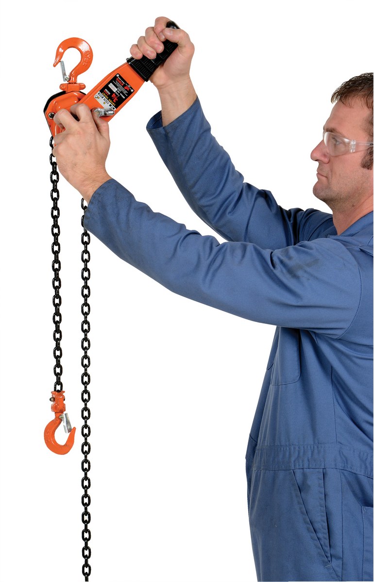 Steel Professional Lever Hoist 20 Ft. Lift Height 1,500 Lb. Capacity OrangeThis versatile professional lever hoist is suitable for lifting, pulling, and lashing the load in many applications. Ideal for confined spaces and can be used at any angle. This lever hoist has a wider hardened ratchet gear, high impact restraint gear case and brake cover. Free wheeling in neutral position serves to quickly attach the load or pull the chain thru the hoist in both directions. With an alloy chain for more strength and less weight. Upper and lower swivel hooks with deformation indicators. Minimum braking load is four (4) times of rated capacity. Fully enclosed brake system. Issued with an individual test certificate.